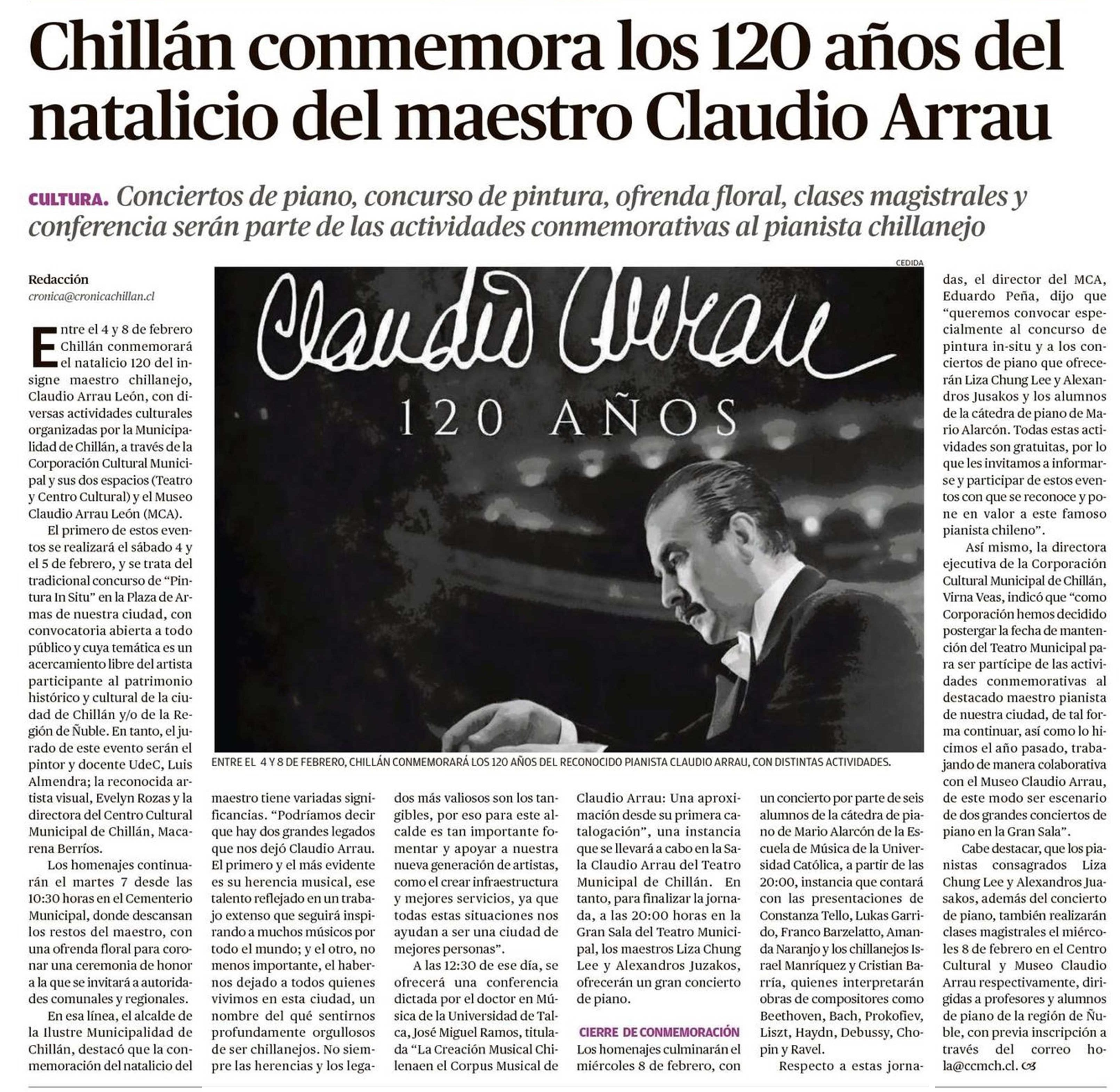 Chillán conmemora los 120 años del natalicio del maestro Claudio Arrau