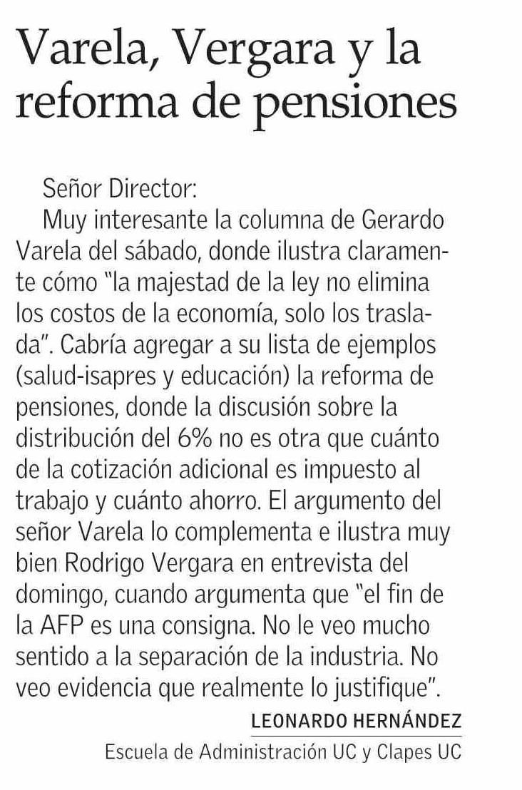 CARTAS: Varela, Vergara y la reforma de pensiones