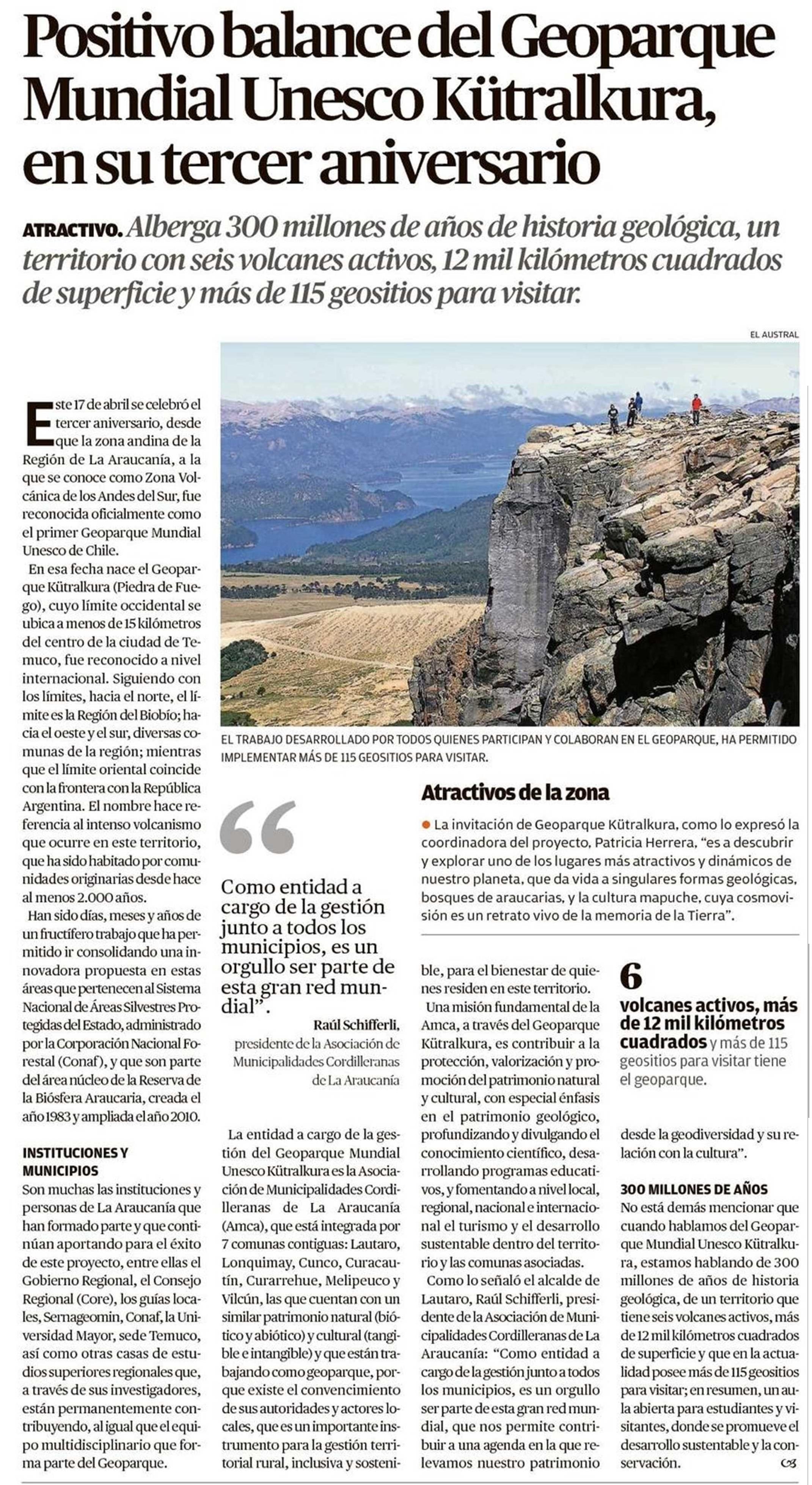 Positivo balance del Geoparque Mundial Unesco Kütralkura, en su tercer aniversario