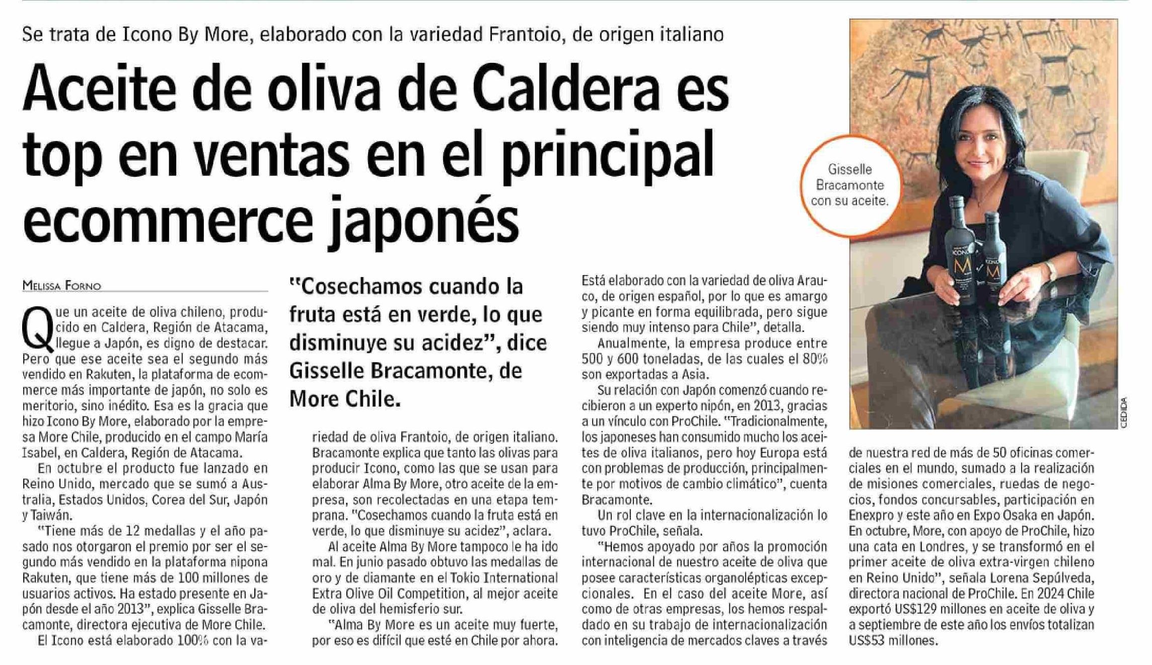 Aceite de oliva de Caldera es top en ventas en el principal ecommerce japonés