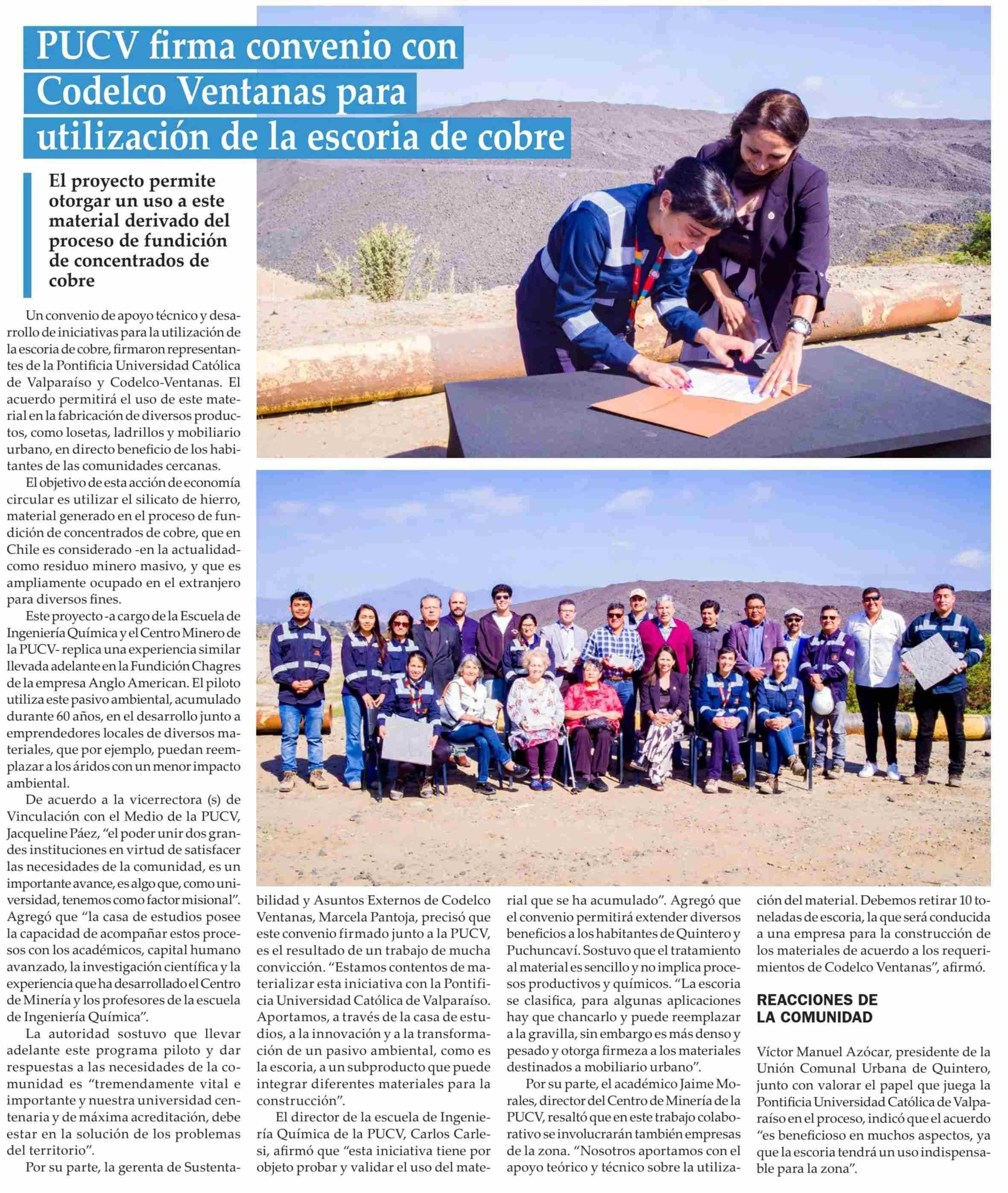 PUCV firma convenio con Codelco Ventanas para utilización de la escoria de cobre