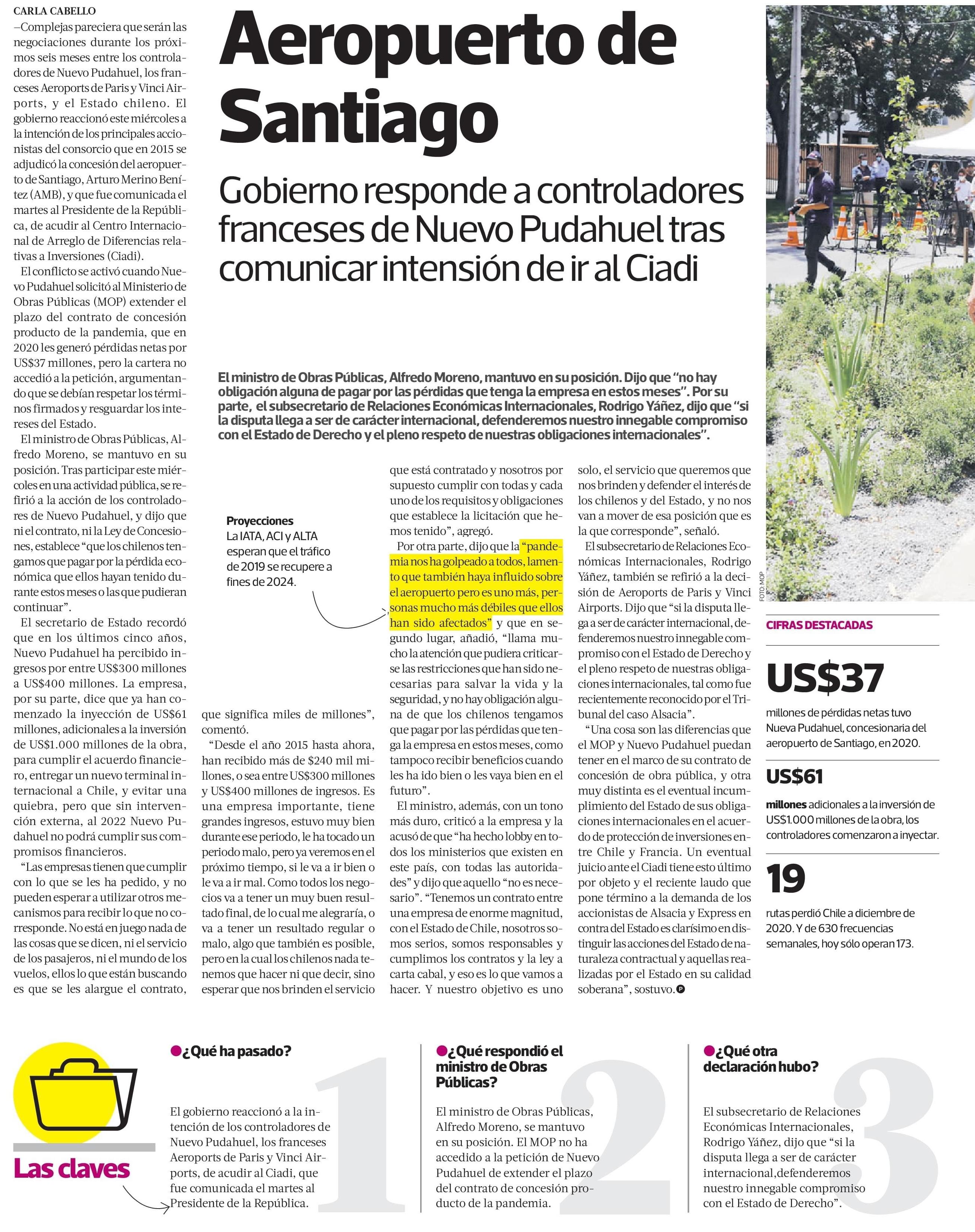 Aeropuerto de Santiago Gobierno responde a controladores franceses de Nuevo Pudahuel tras comunicar intensión de ir al Ciadi