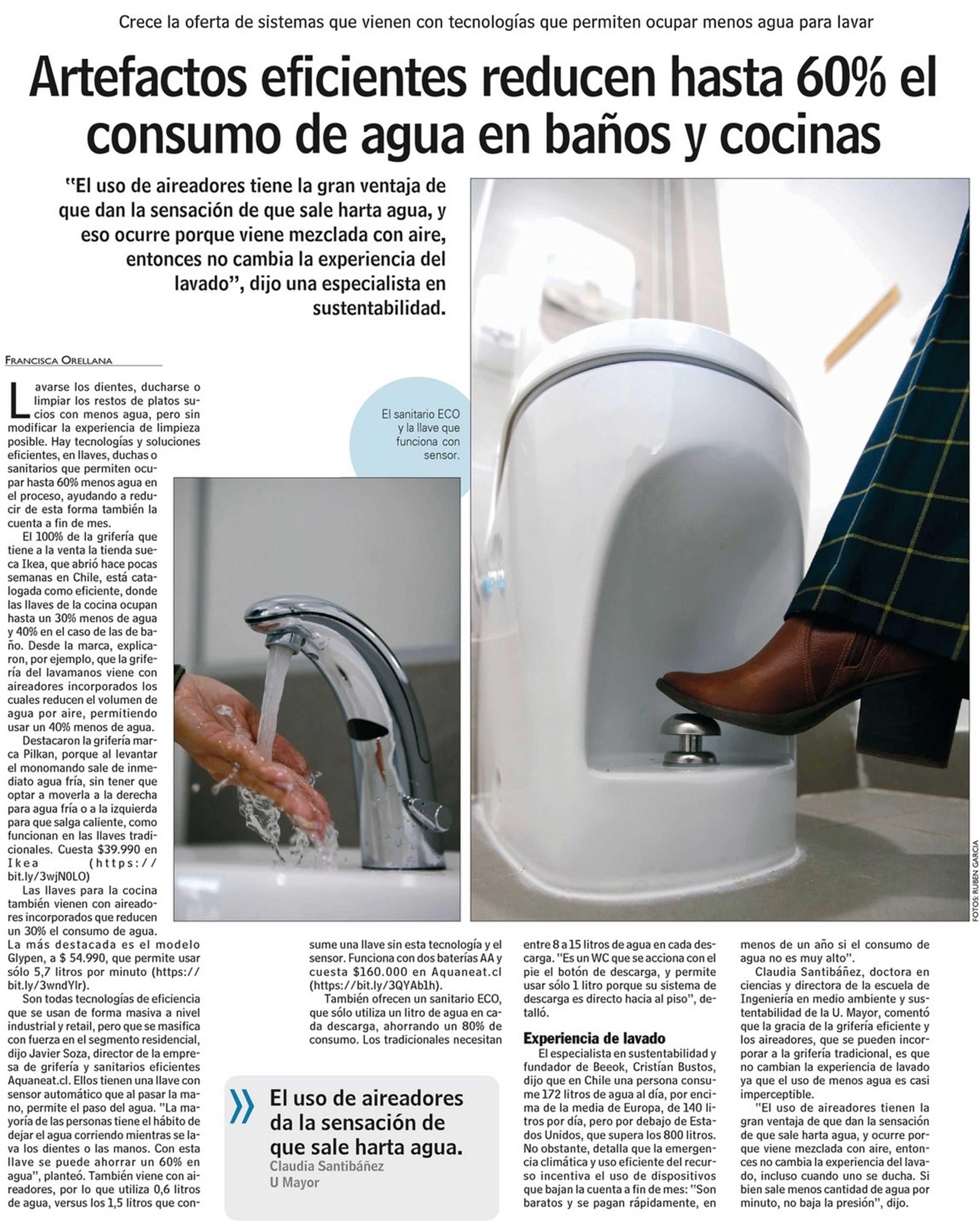 Artefactos eficientes reducen hasta 60% el consumo de agua en baños y cocinas