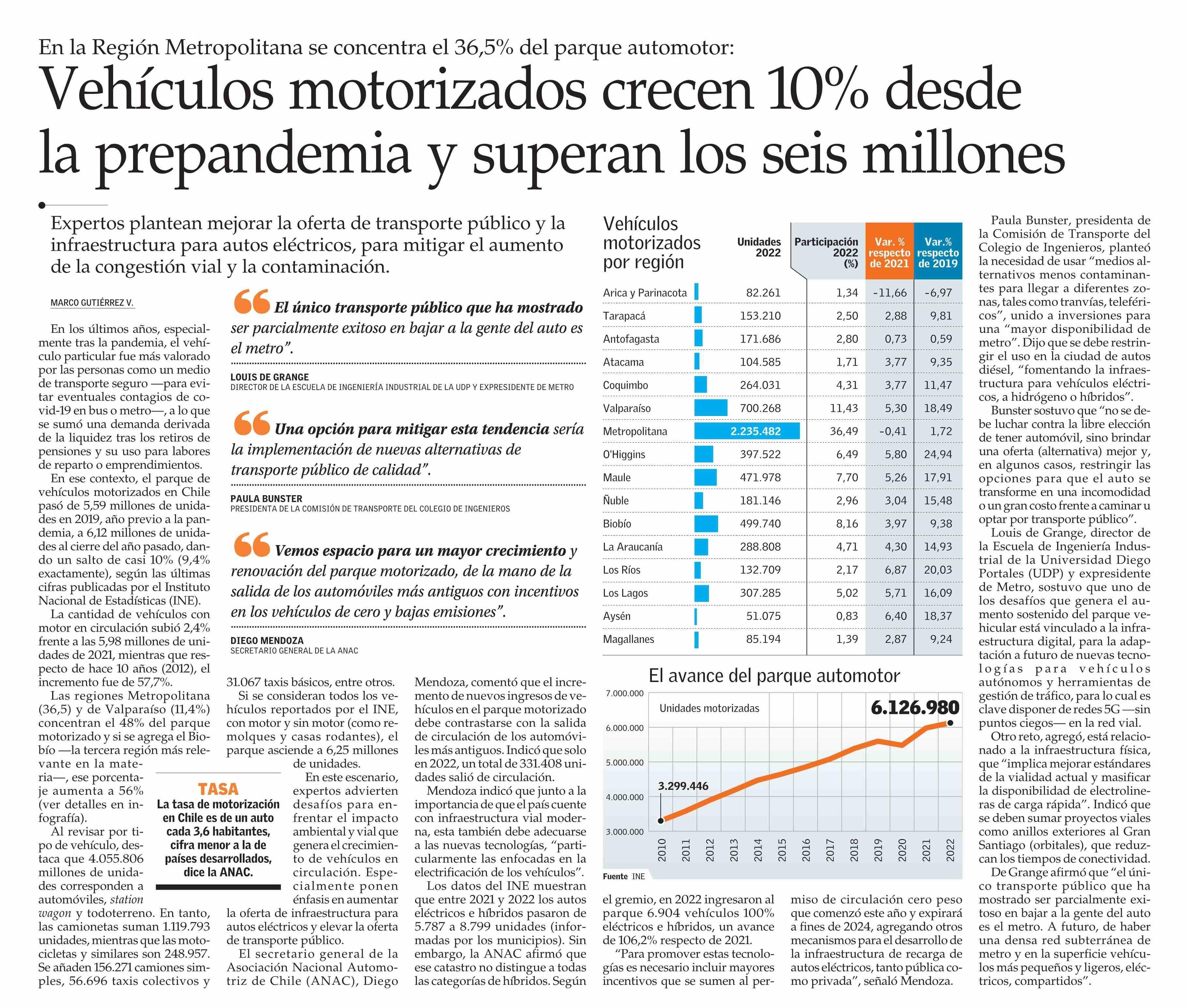 Vehículos motorizados crecen 10% desde la prepandemia y superan los seis millones
