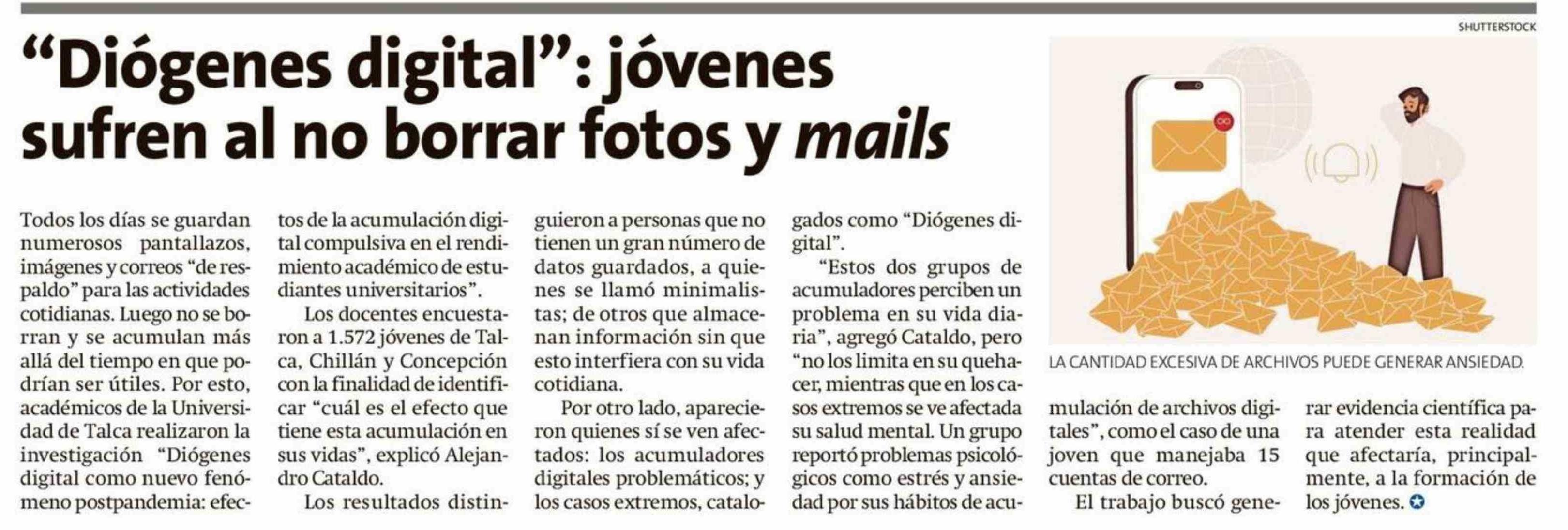 "Diógenes digital": jóvenes sufren al no borrar fotos y mails