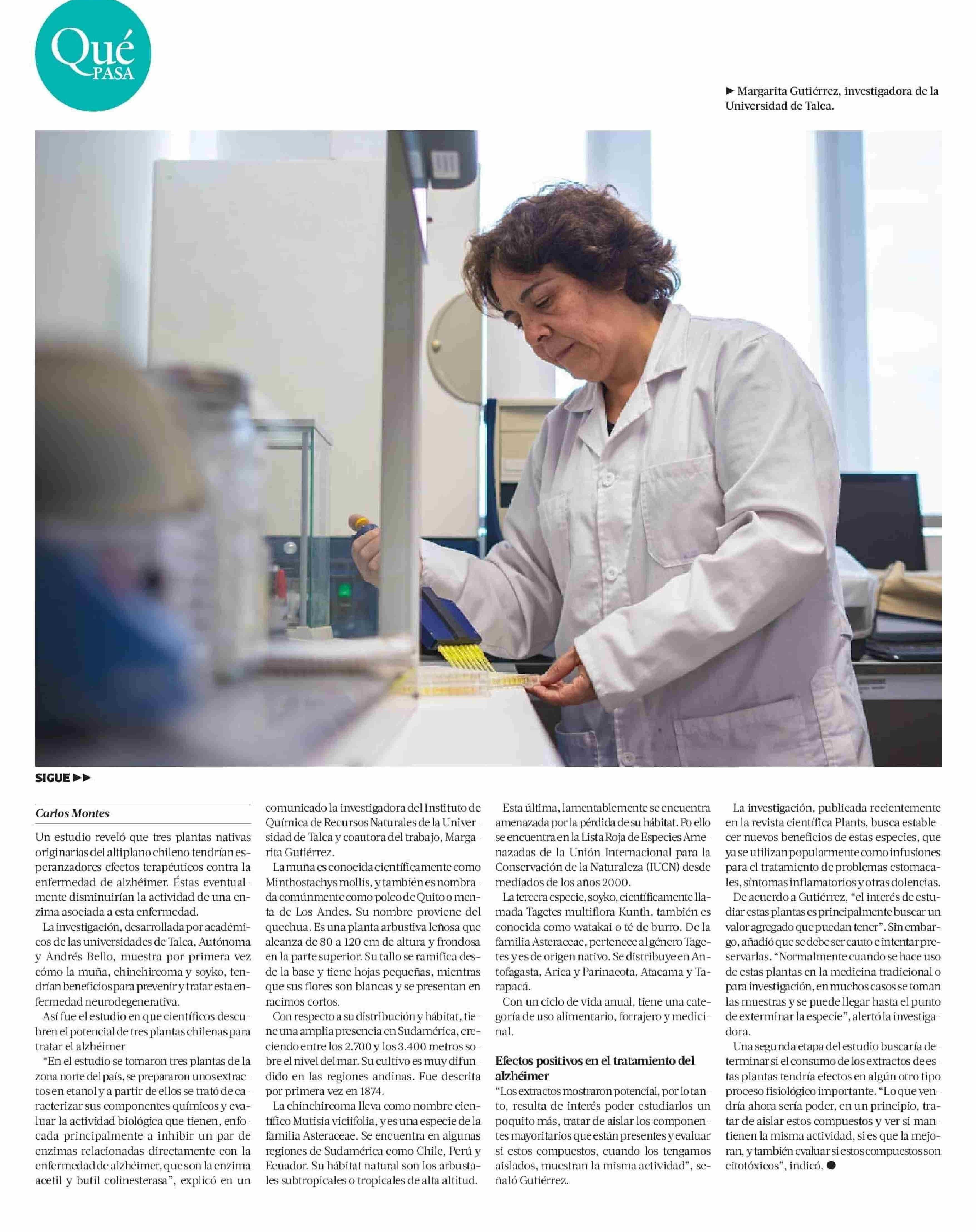 Científicos descubren potencial de tres plantas chilenas para tratar el alzhéimer