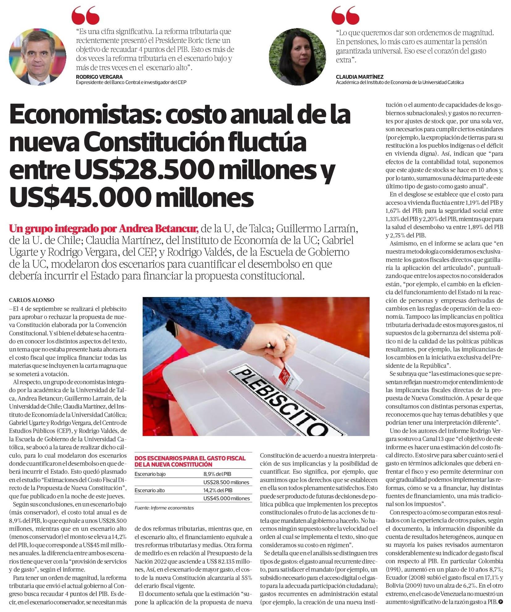 Economistas: costo anual de la nueva Constitución fluctúa entre US$28.500 millones y US$45.000 millones