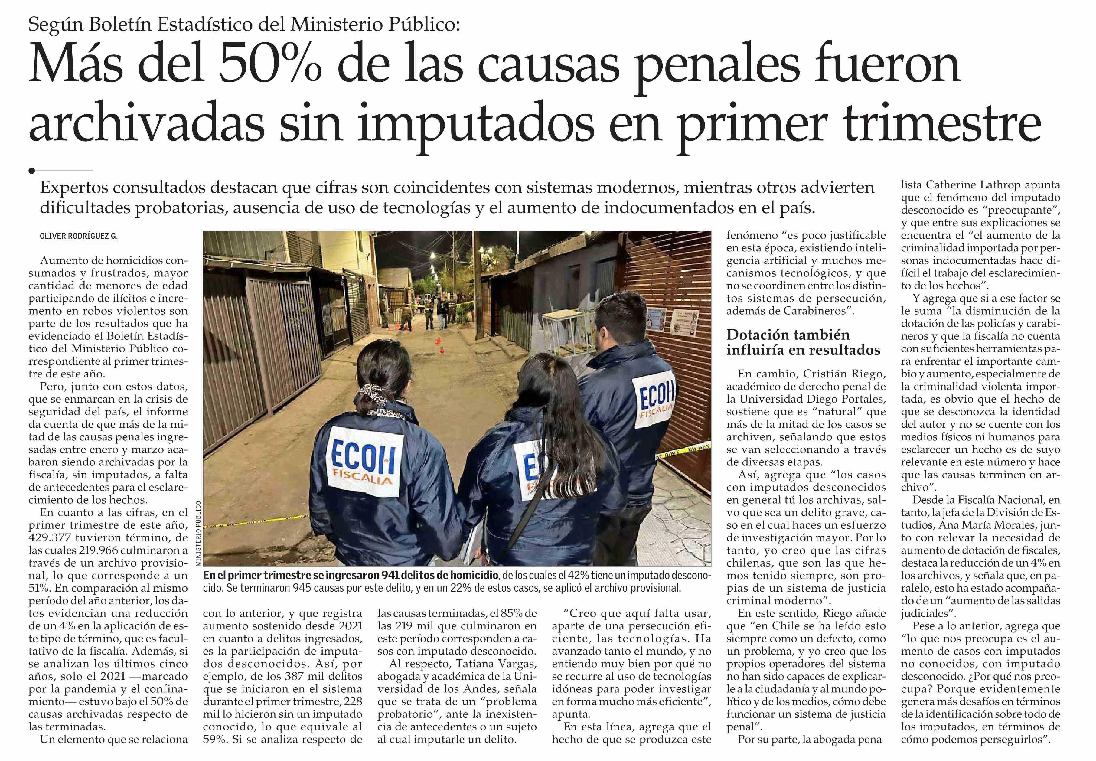 Más del 50% de las causas penales fueron archivadas sin imputados en primer trimestre