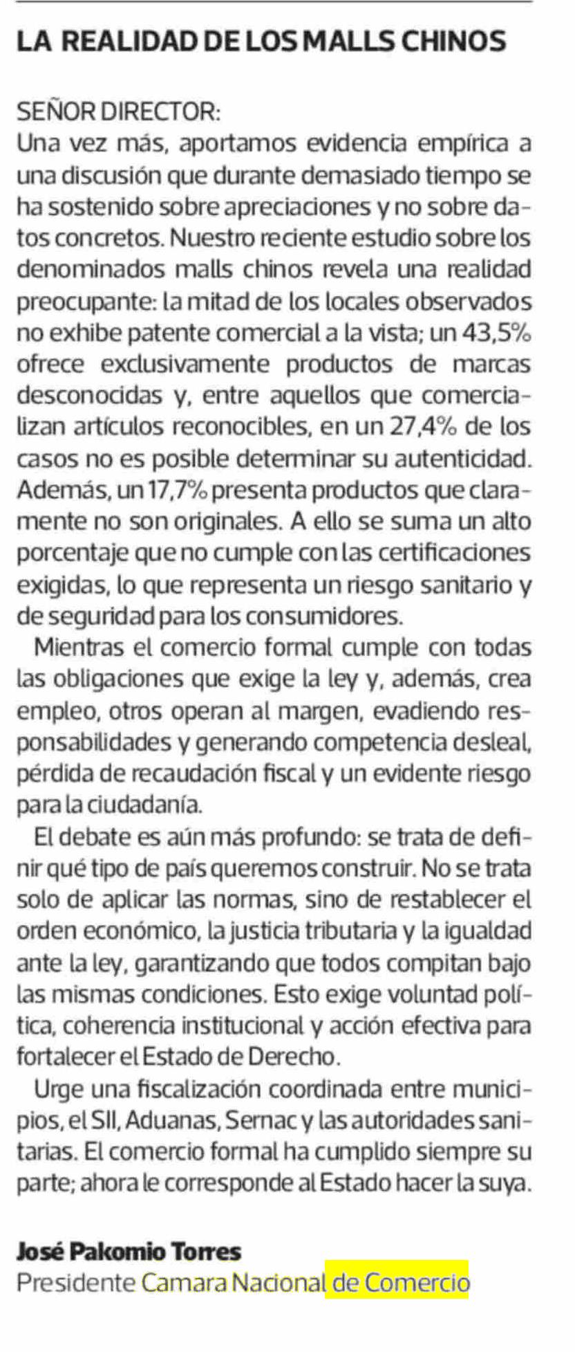 CARTAS: LA REALIDAD DE LOS MALLS CHINOS
