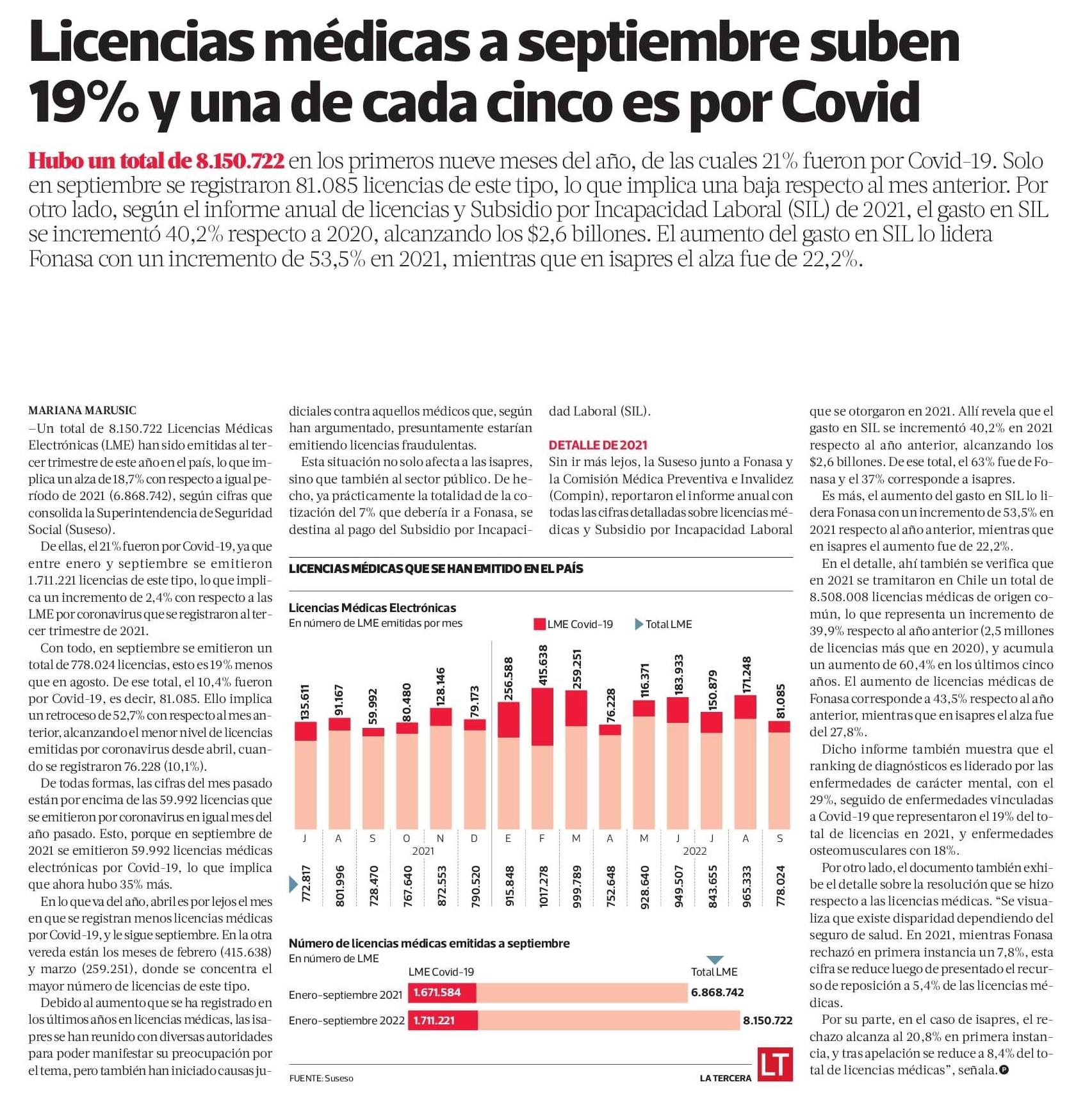 Licencias médicas a septiembre suben 19% y una de cada cinco es por Covid