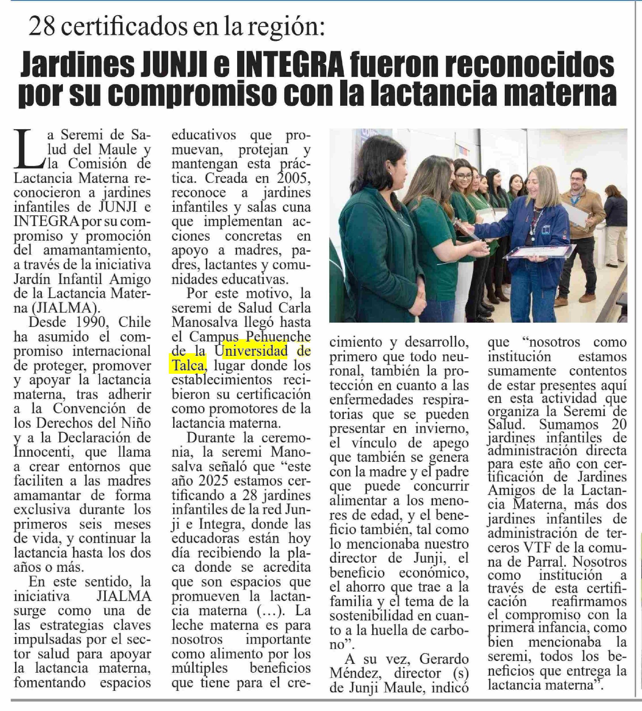 Jardines JUNJI e INTEGRA fueron reconocidos por su compromiso con la lactancia materna