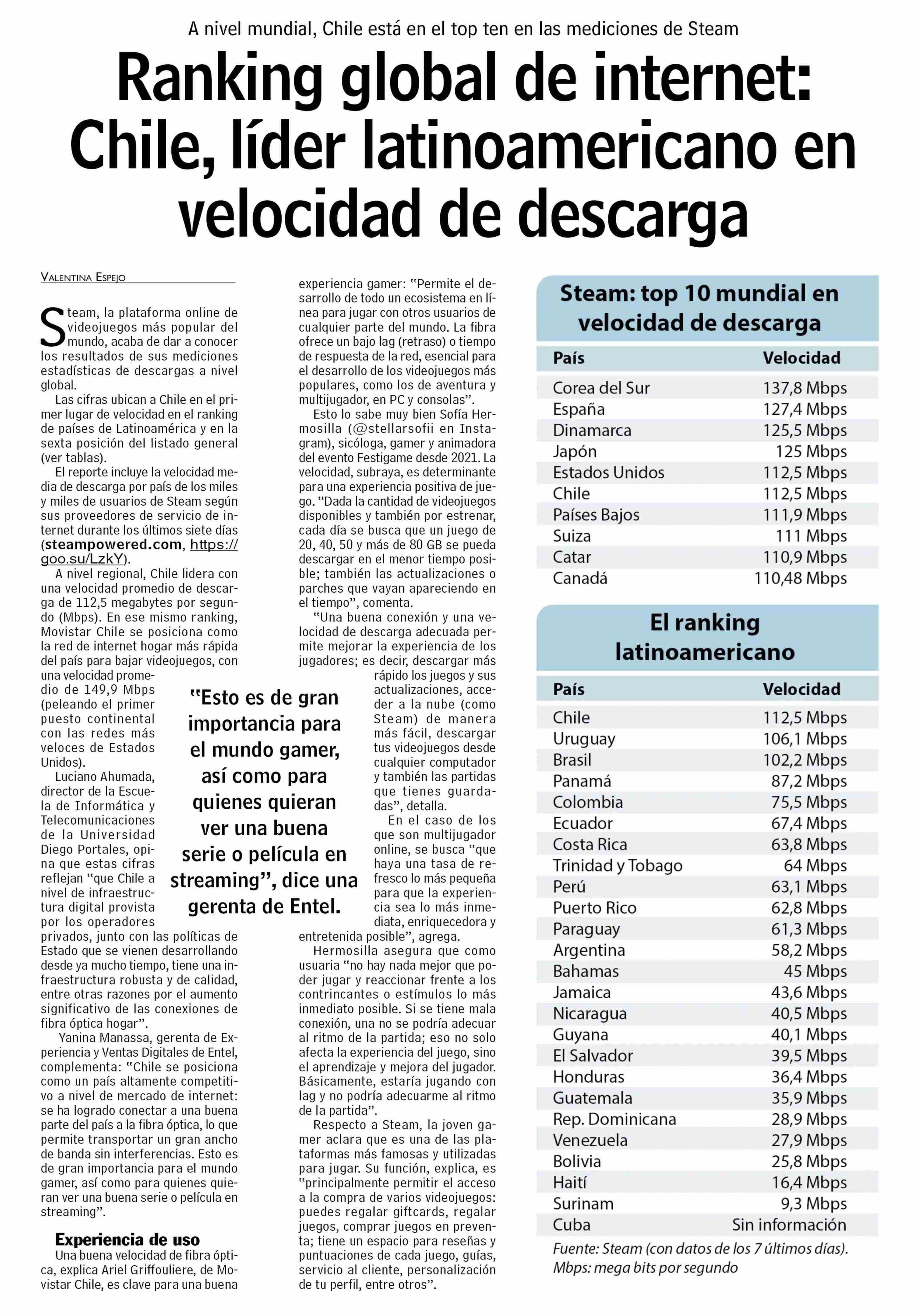 Ranking global de internet: Chile, lider latinoamericano en velocidad de descarga