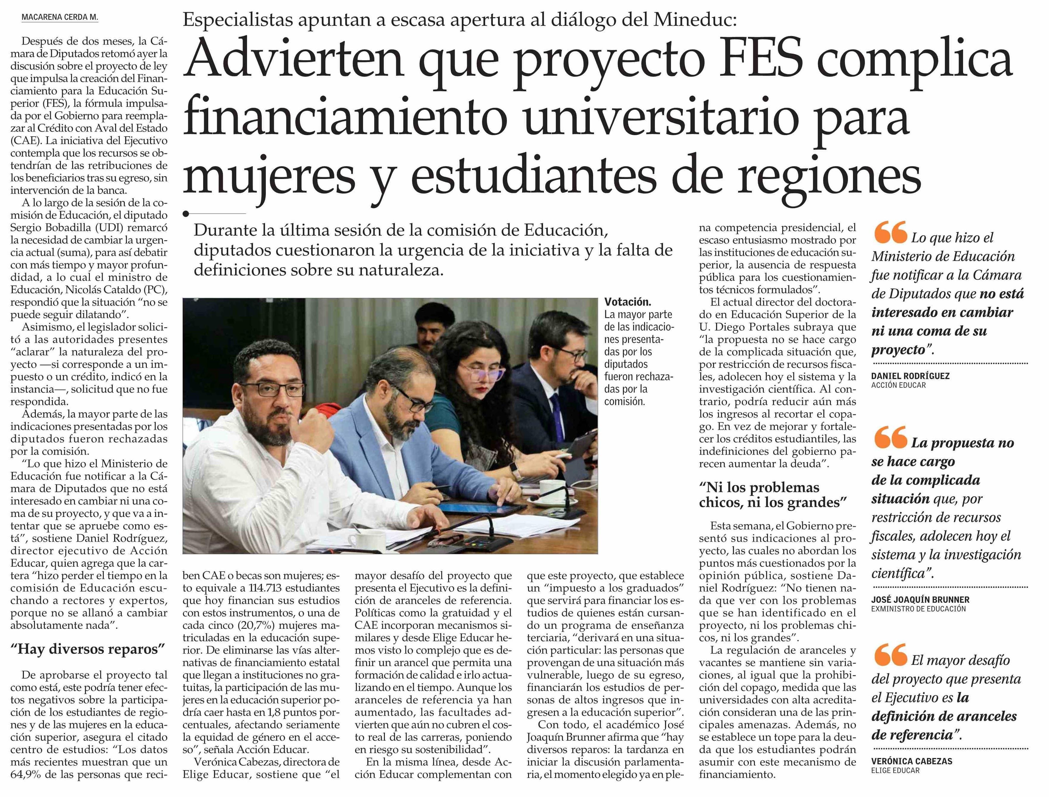 Advierten que proyecto FES complica financiamiento universitario para mujeres y estudiantes de regiones