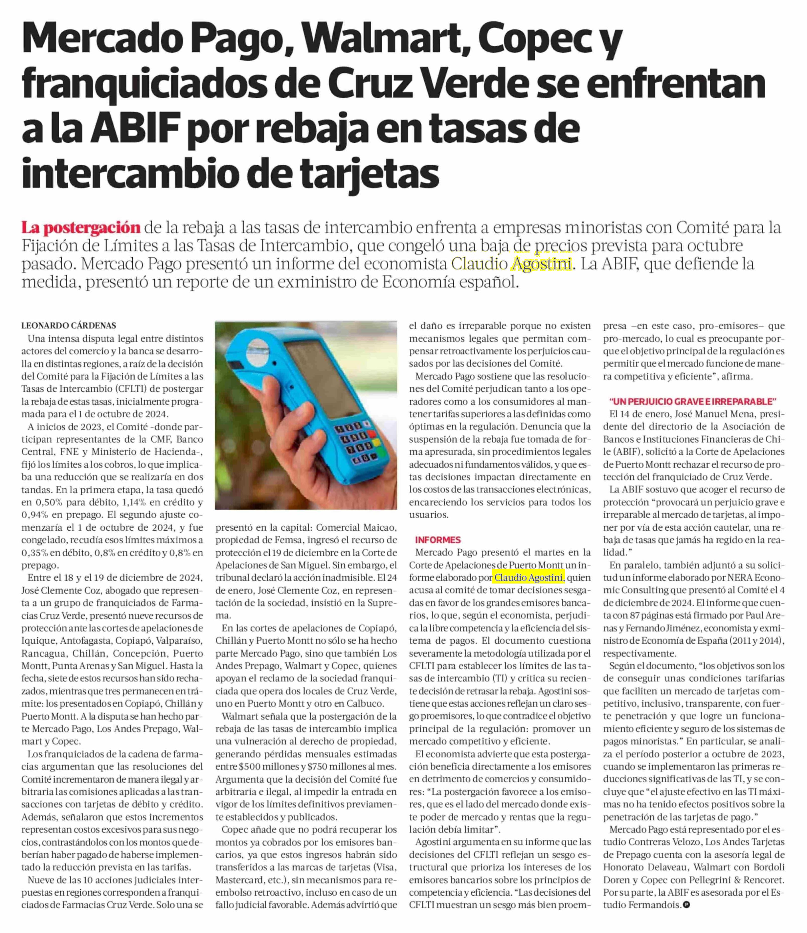 Mercado Pago, Walmart, Copec y franquiciados de Cruz Verde se enfrentan ala ABIF por rebaja entasas de intercambio de tarjetas