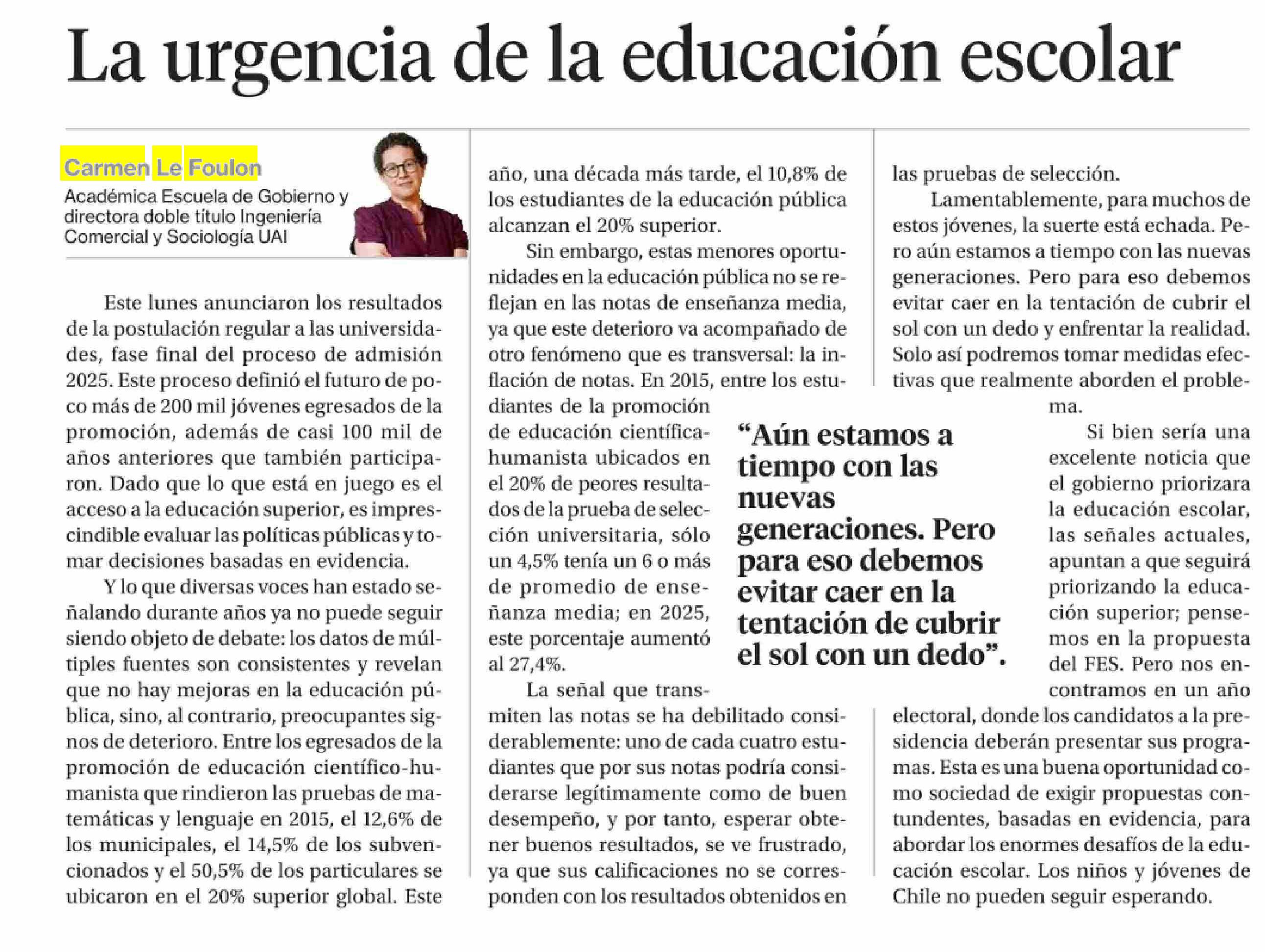 COLUMNAS DE OPINIÓN: La urgencia de la educación escolar