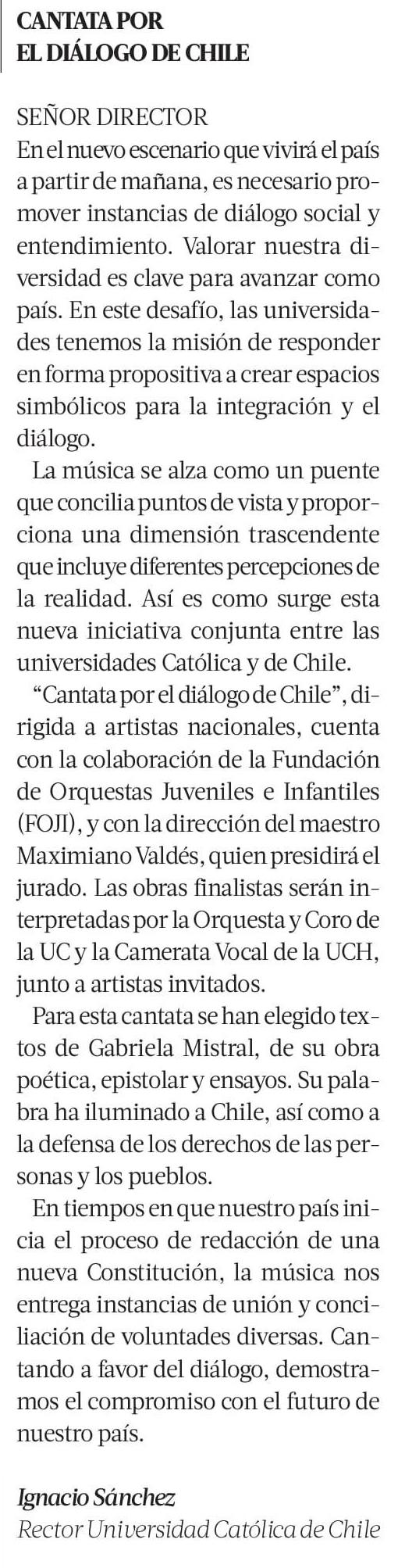 CANTATA POR EL DIÁLOGO DE CHILE