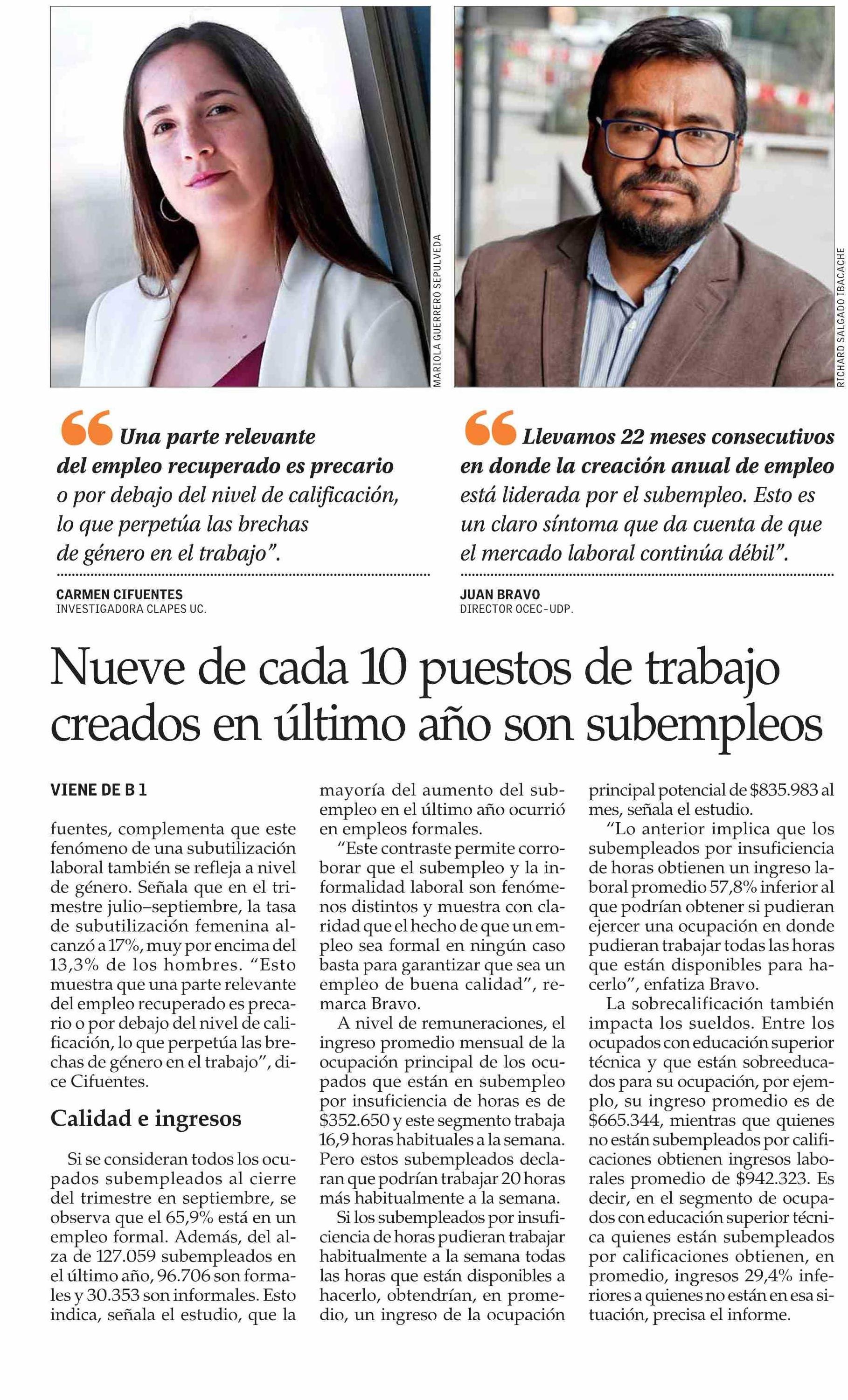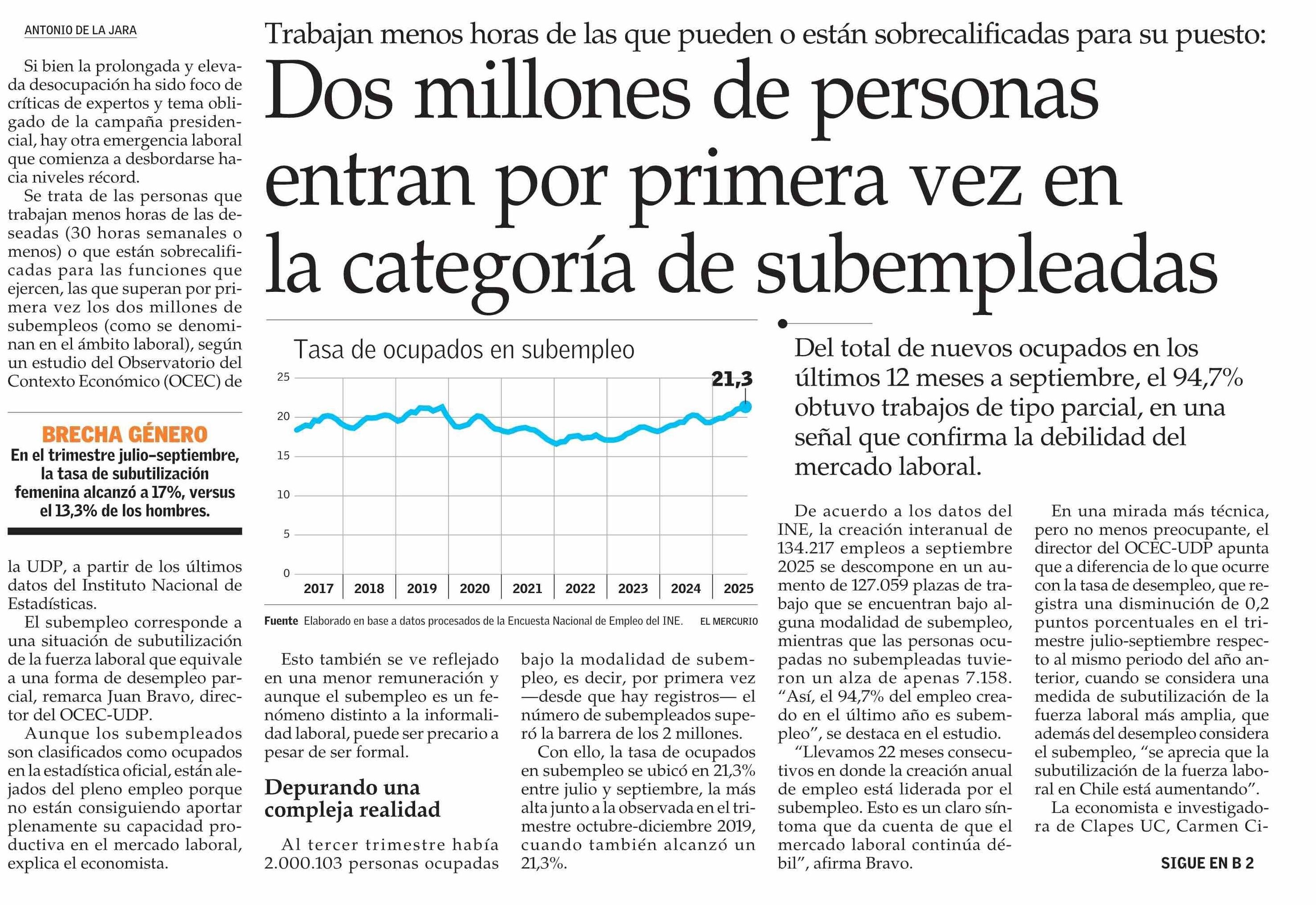 Dos millones de personas entran por primera vez en la categoría de subempleadas