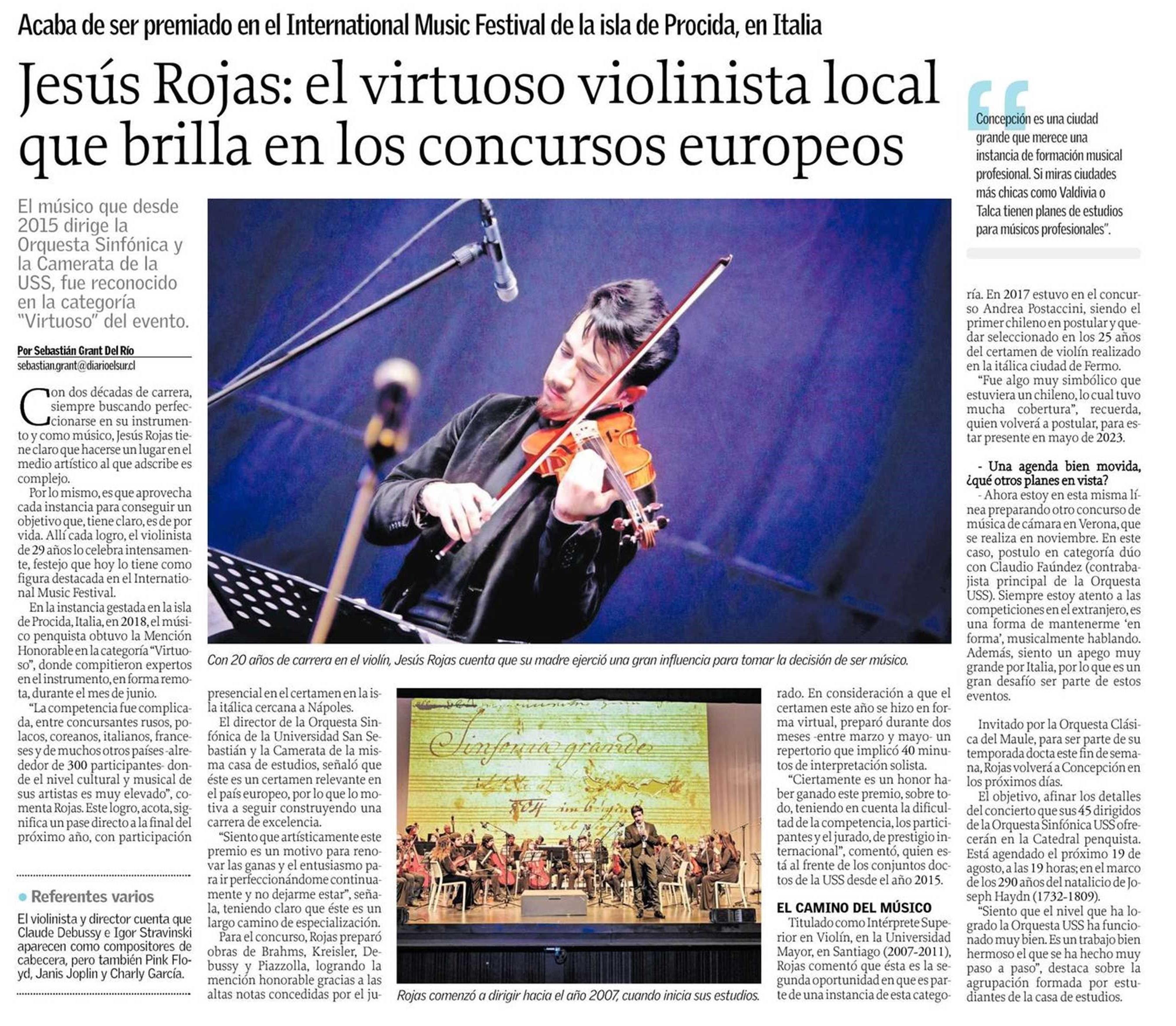 Jesús Rojas: el virtuoso violinista local que brilla en los concursos europeos