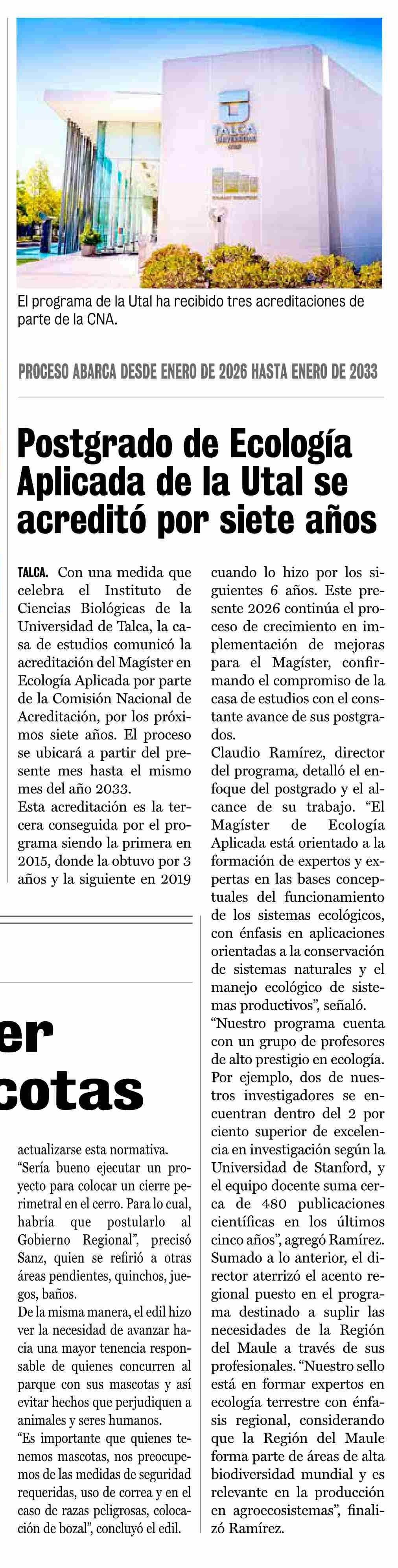 Postgrado de Ecología Aplicada de la Utal se acredito por siete años