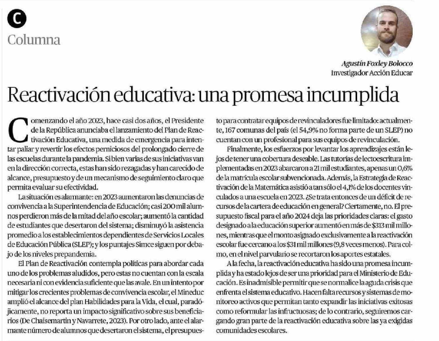 Reactivación educativa: una promesa incumplida