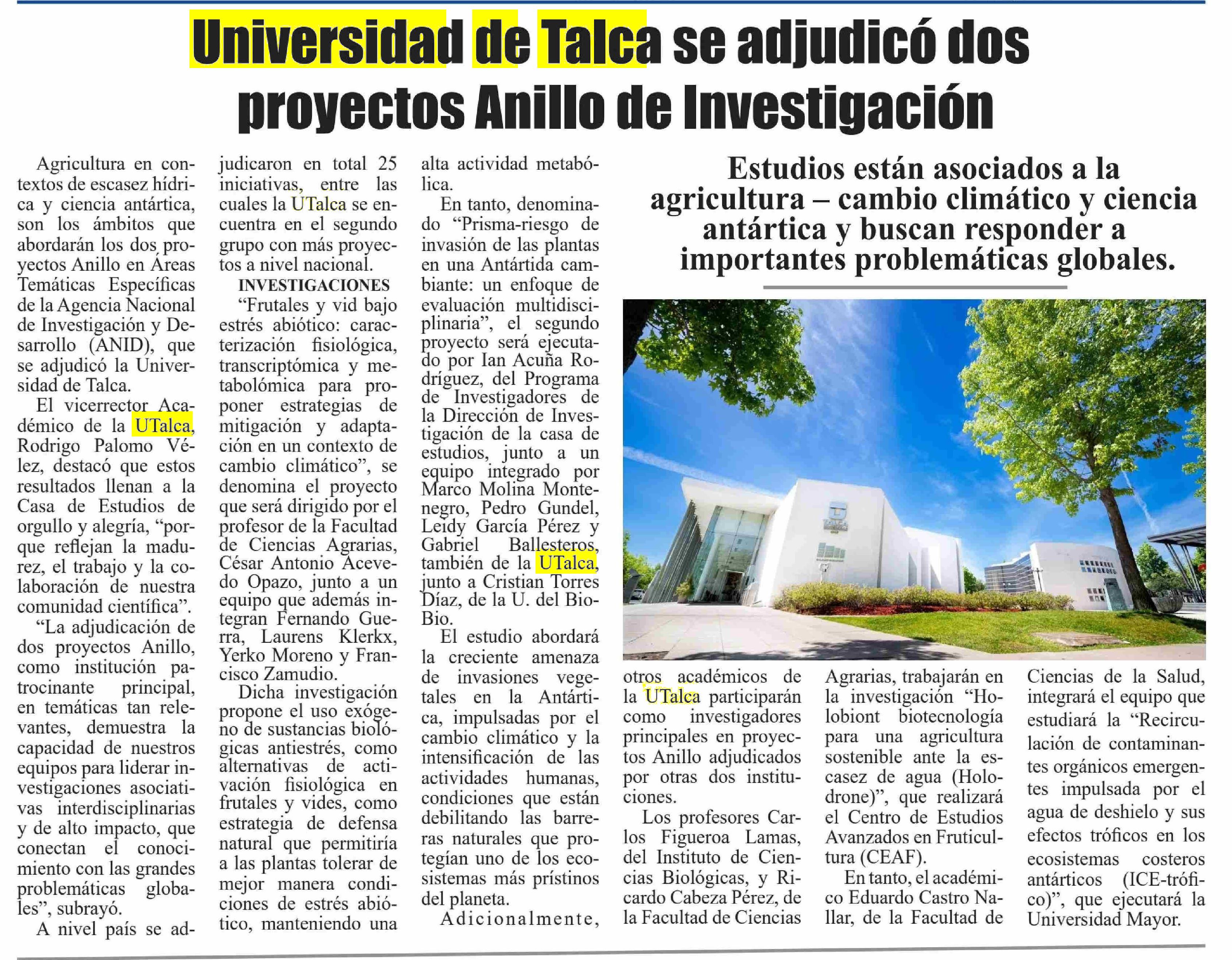 Universidad de Talca se adjudicó dos proyectos Anillo de Investigación