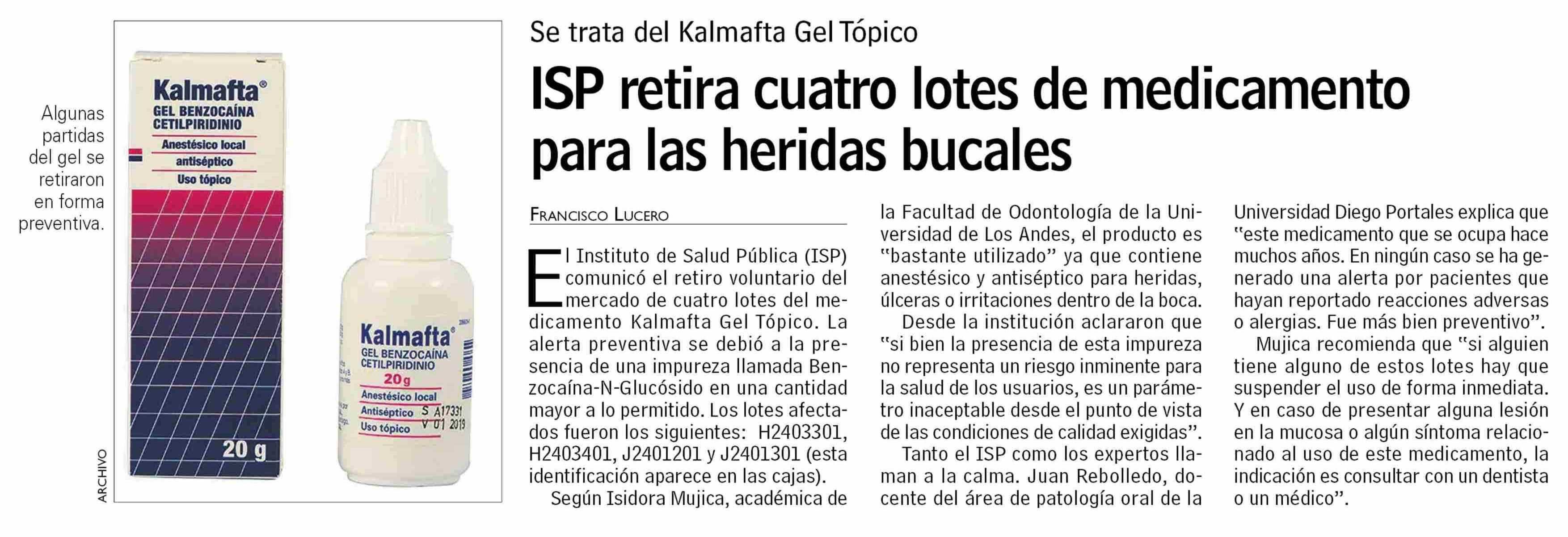 ISP retira cuatro lotes de medicamento para las heridas bucales