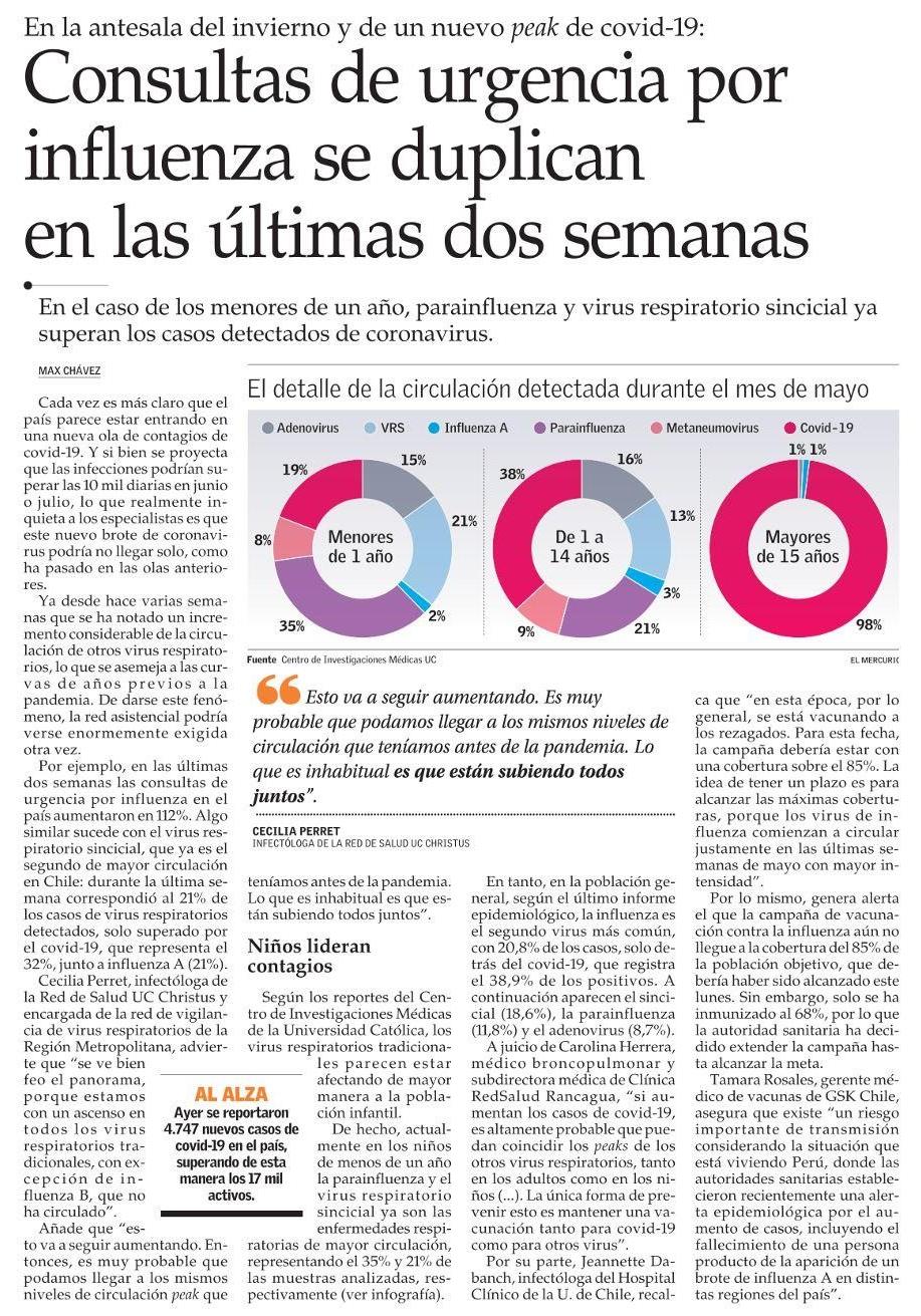 Consultas de urgencia por influenza se duplican en las últimas dos semanas