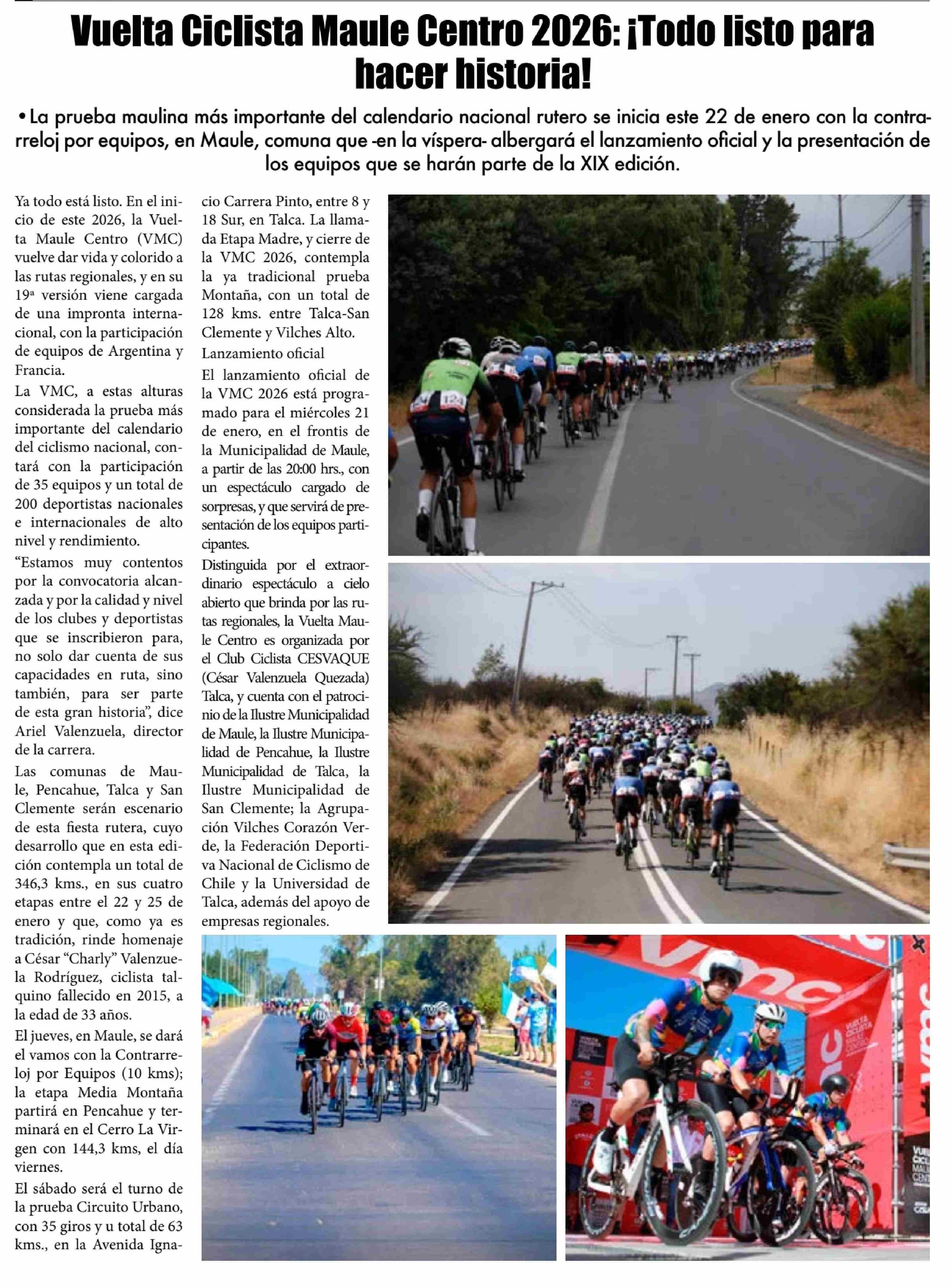 Vuelta Ciclista Maule Centro 2026: ¡ Todo listo para hacer historia!