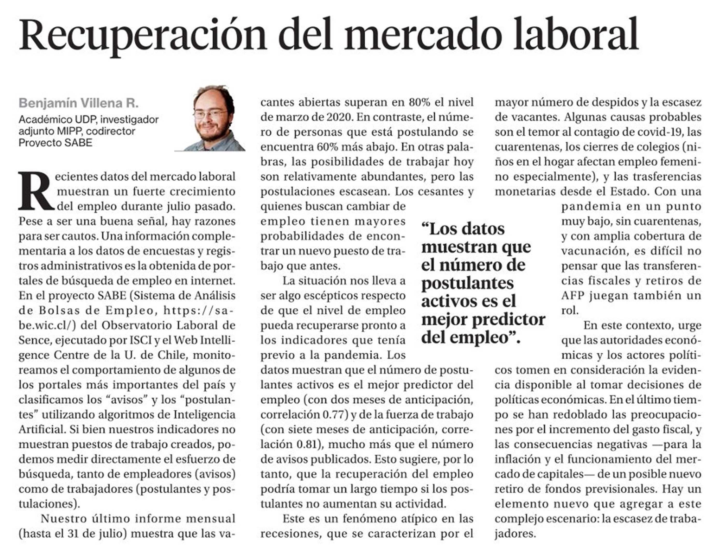 Recuperación del mercado laboral