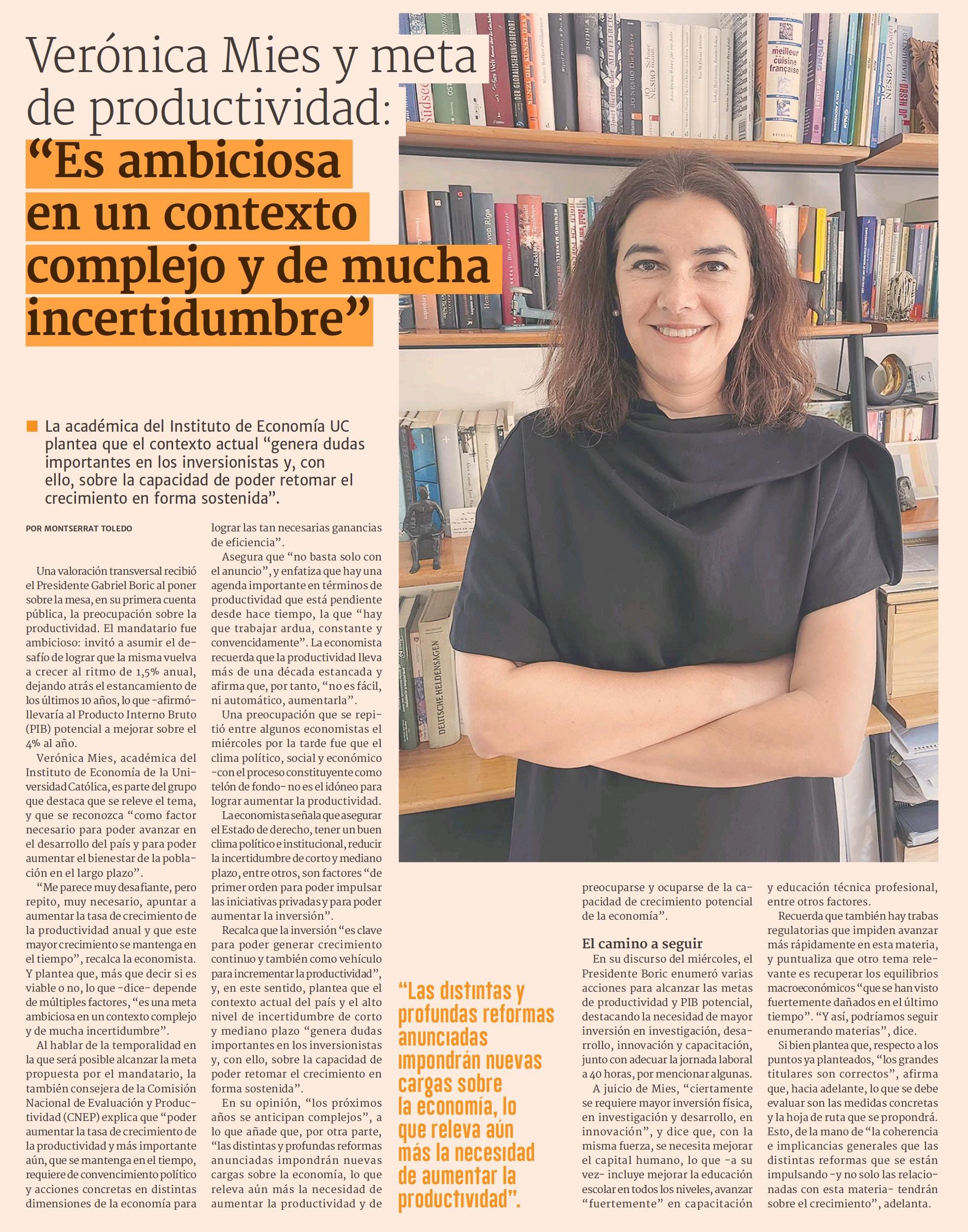 Verónica Mies y meta de productividad: "Es ambiciosa en un contexto complejo y de mucha incertidumbre”