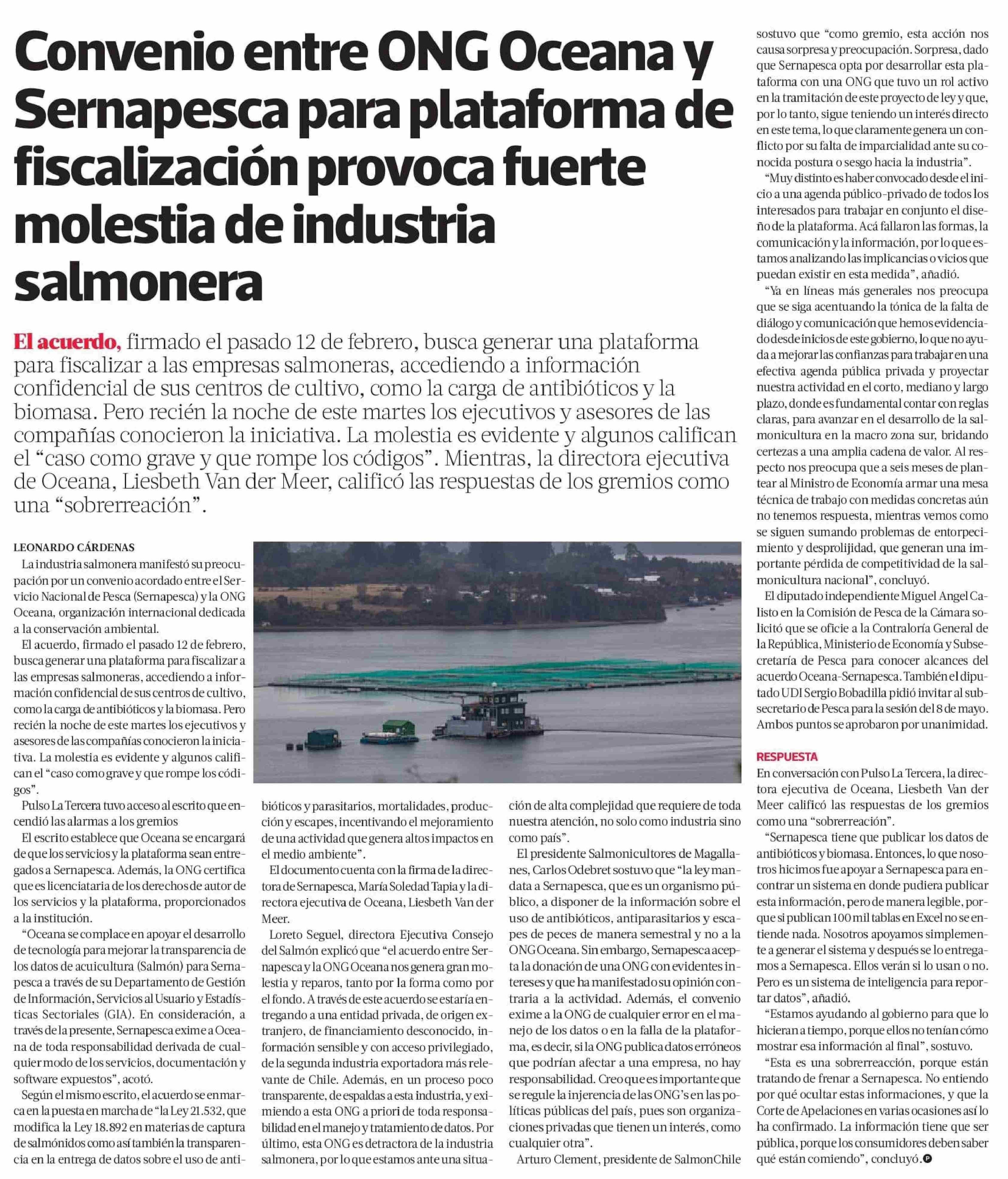 Convenio entre ONG Oceana y Sernapesca para plataforma de fiscalización provoca fuerte molestia de industria salmonera