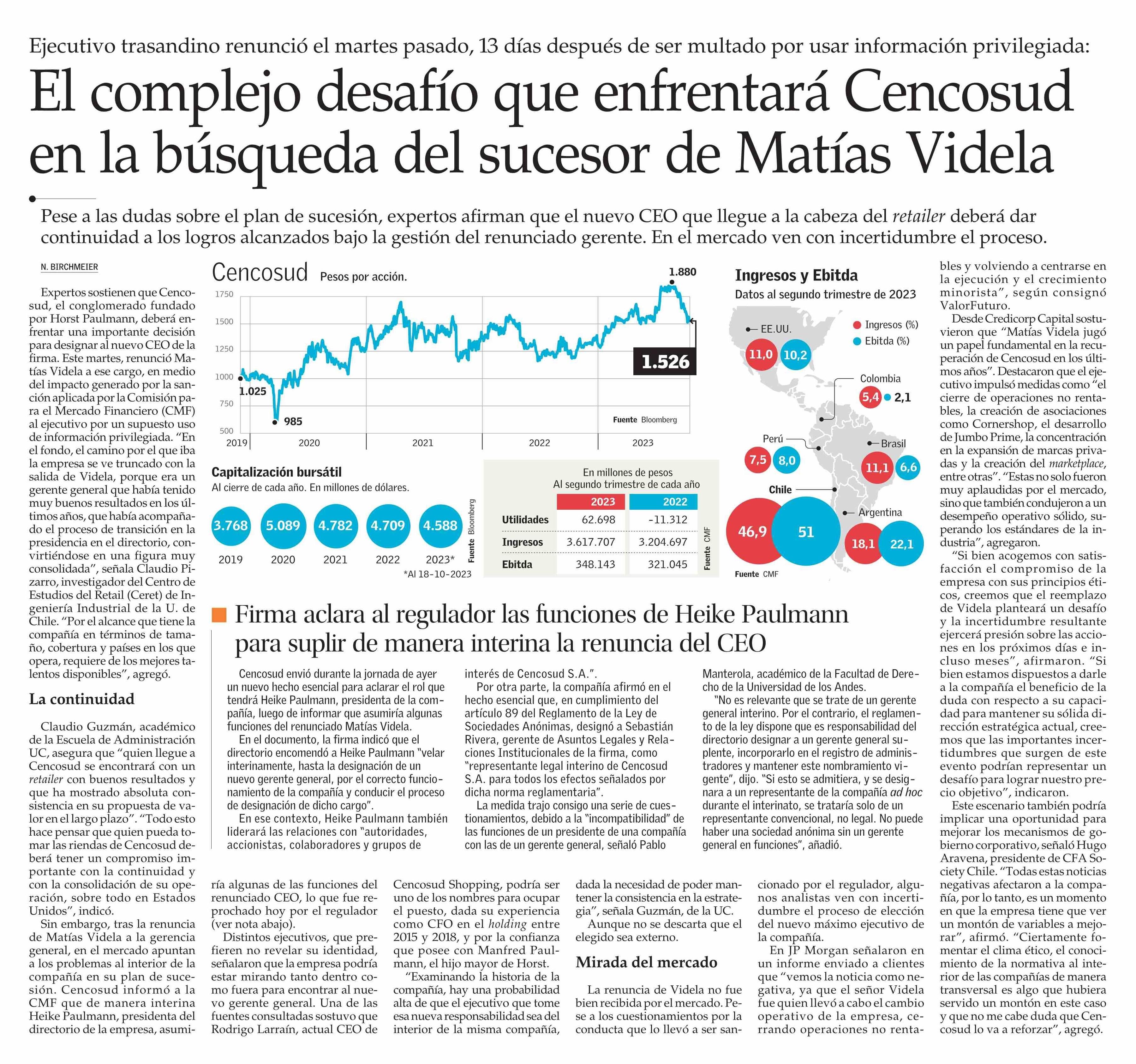 El complejo desafío que enfrentará Cencosud en la búsqueda del sucesor de Matías Videla