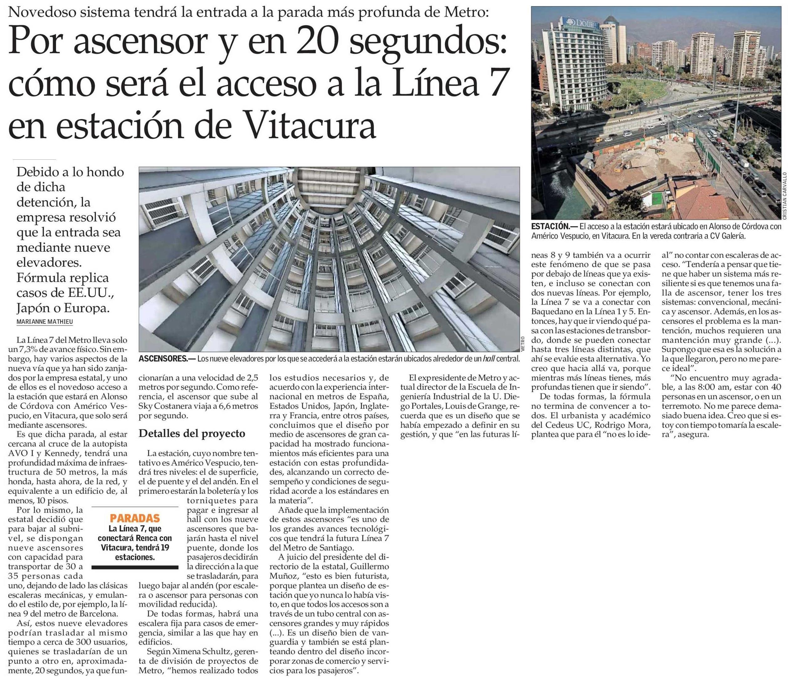 Por ascensor y en 20 segundos: cómo será el acceso a la Línea 7 en estación de Vitacura