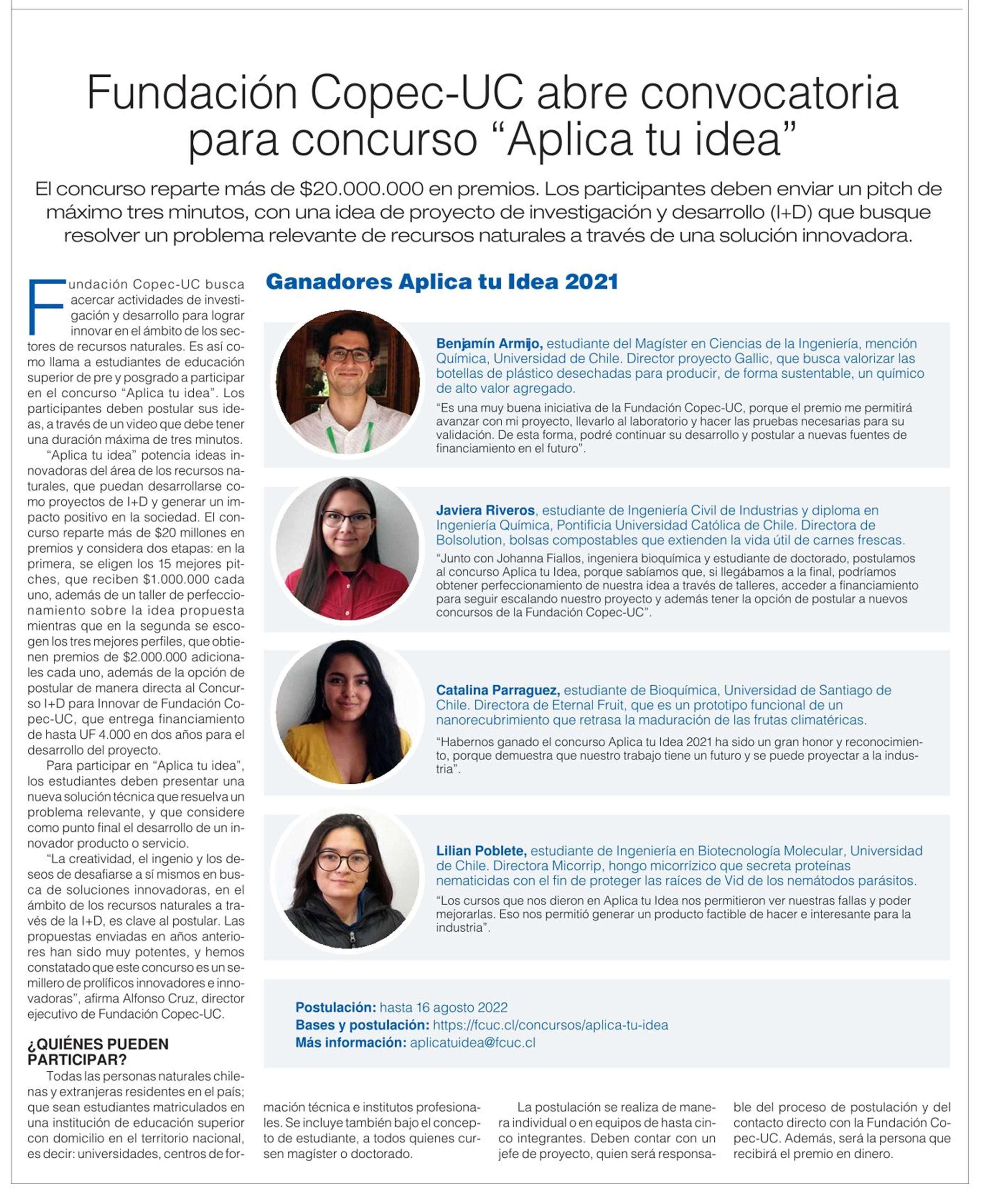 Fundación Copec-UC abre convocatoria para concurso “Aplica tu Idea”