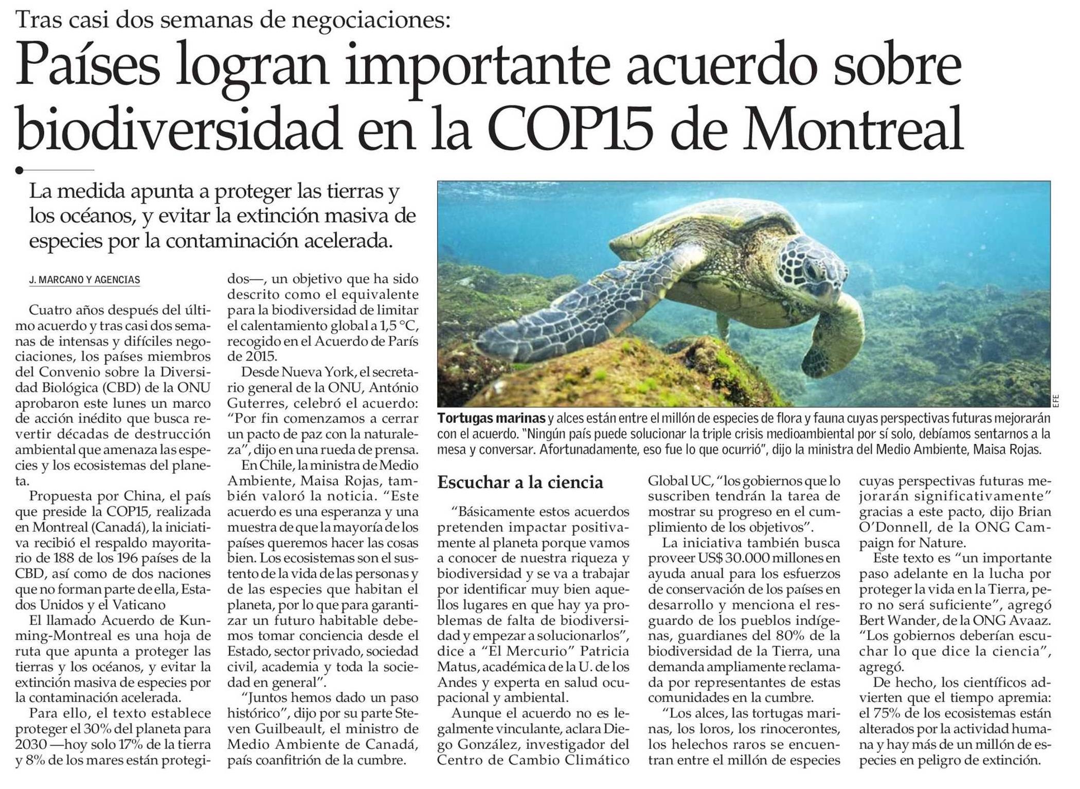 Países logran importante acuerdo sobre biodiversidad en la COP15 de Montreal