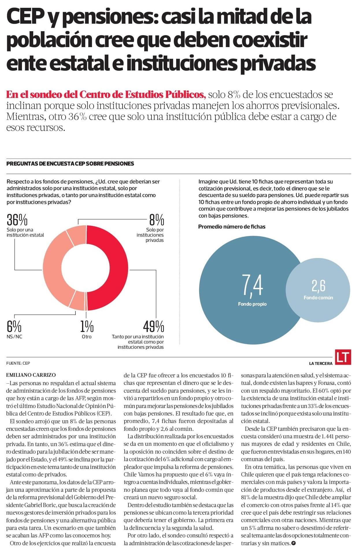CEP y pensiones: casi la mitad de la población cree que deben coexistir ente estatal e instituciones privadas