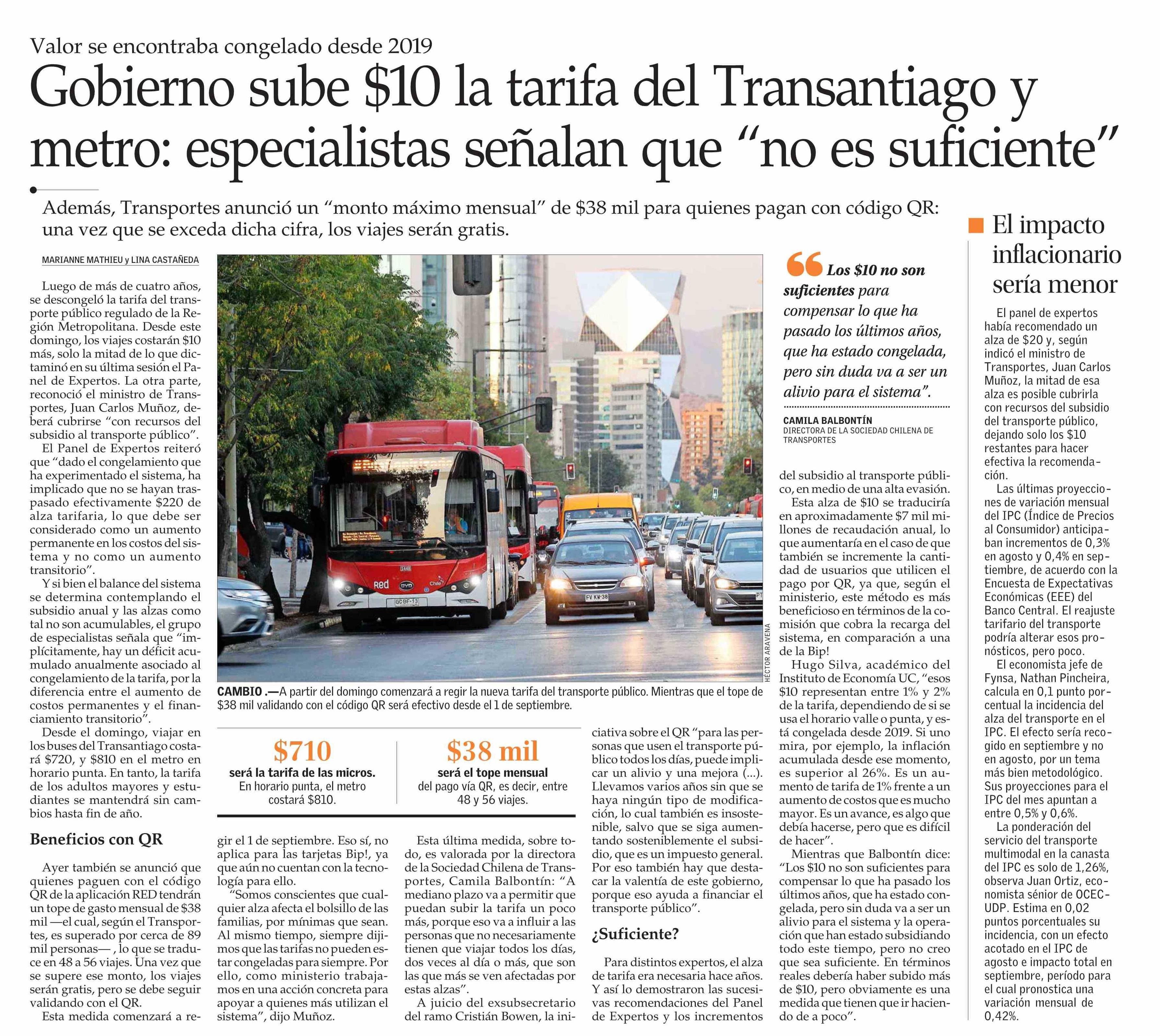 Gobierno sube $10 la tarifa del Transantiago y metro: especialistas señalan que "no es suficiente"