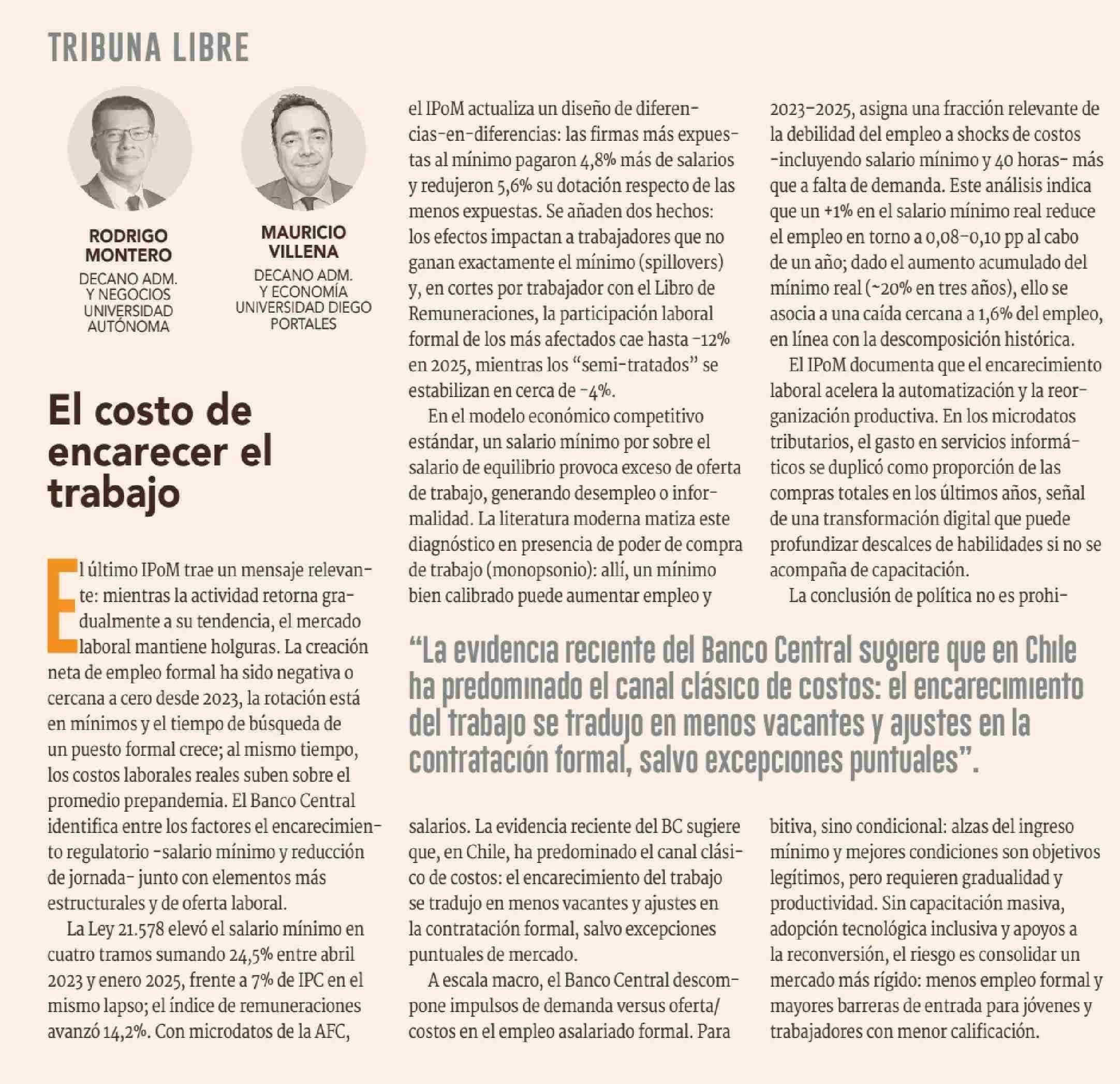 COLUMNAS DE OPINIÓN: El costo de encarecer el trabajo