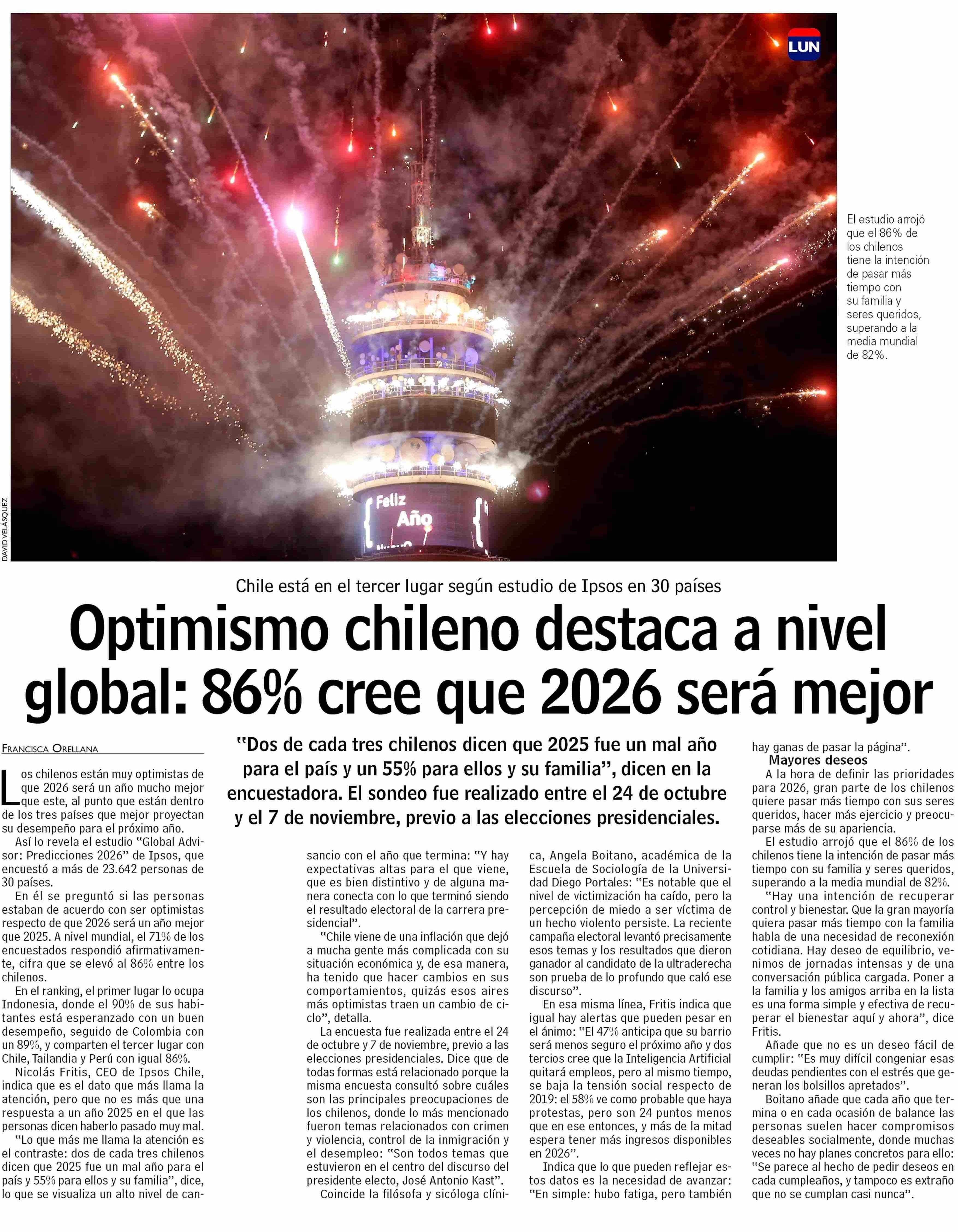 Optimismo chileno destaca a nivel global: 86% cree que 2026 será mejor