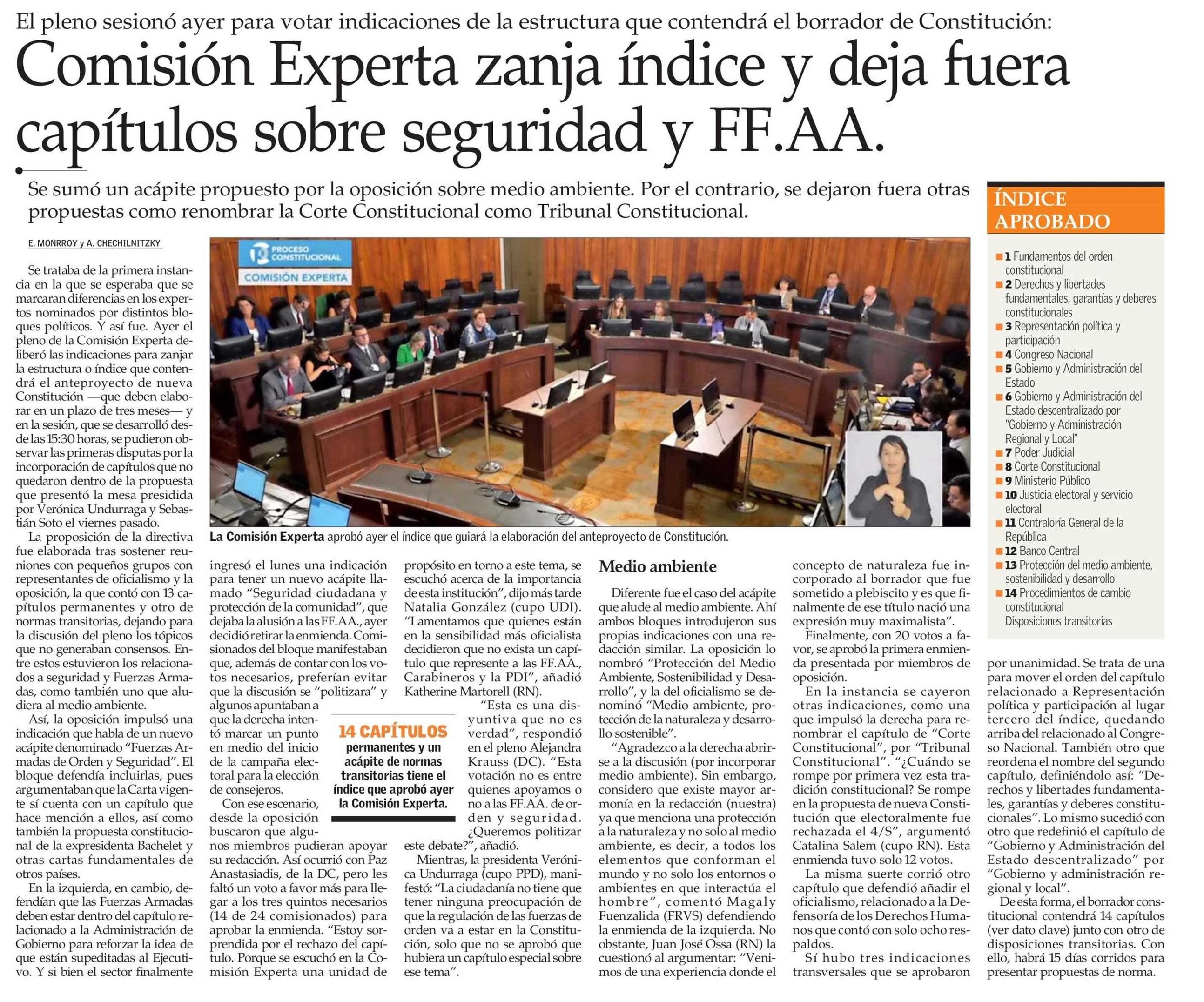 Comisión Experta zanja índice y deja fuera capítulos sobre seguridad y FF.AA.