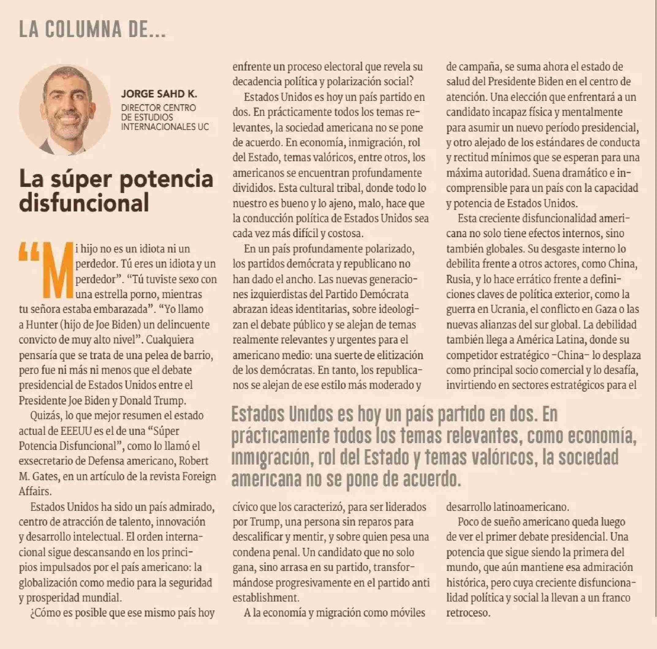 COLUMNAS DE OPINIÓN: La súper potencia disfuncional