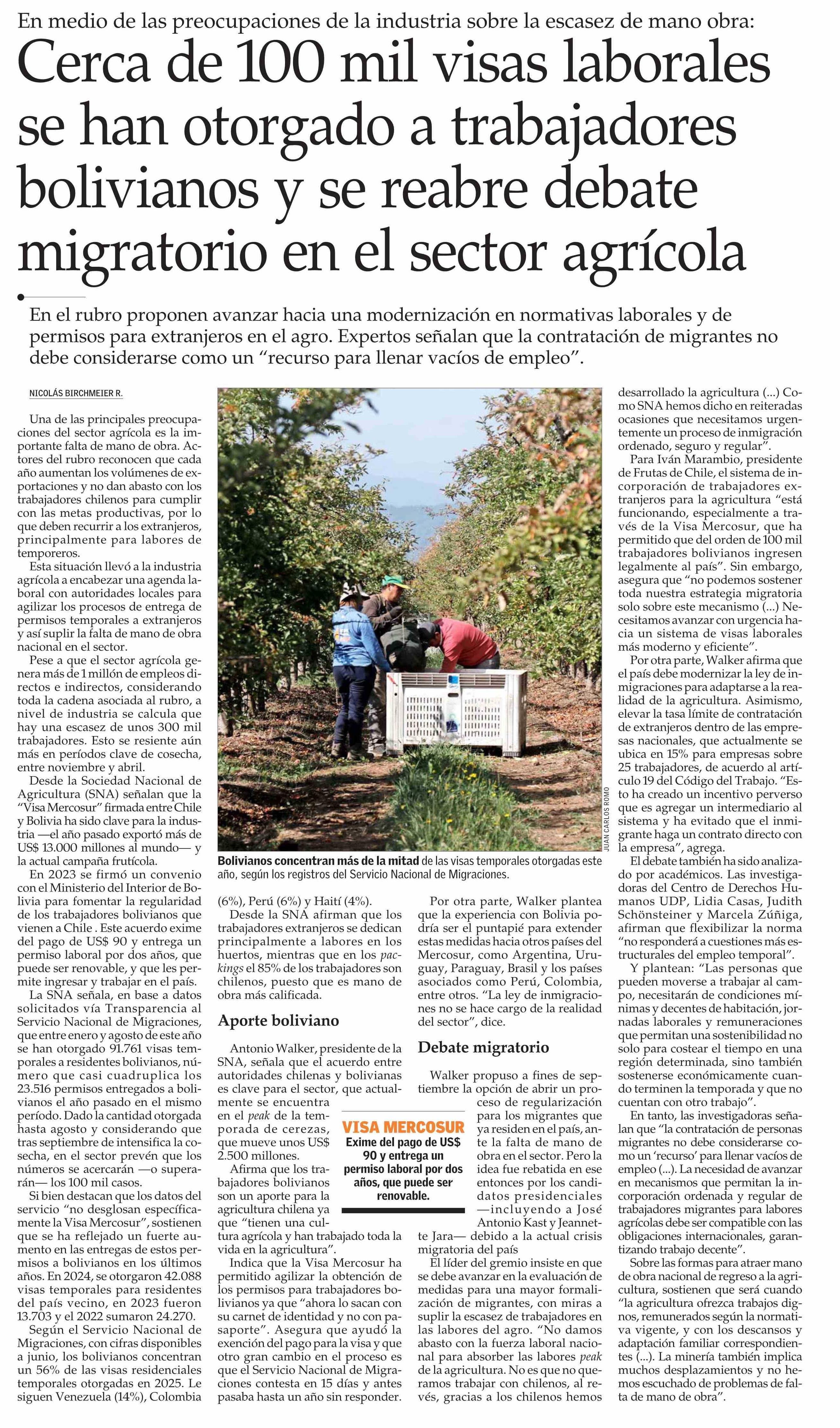 Cerca de 100 mil visas laborales se han otorgado a trabajadores bolivianos y se reabre debate migratorio en el sector agrícola