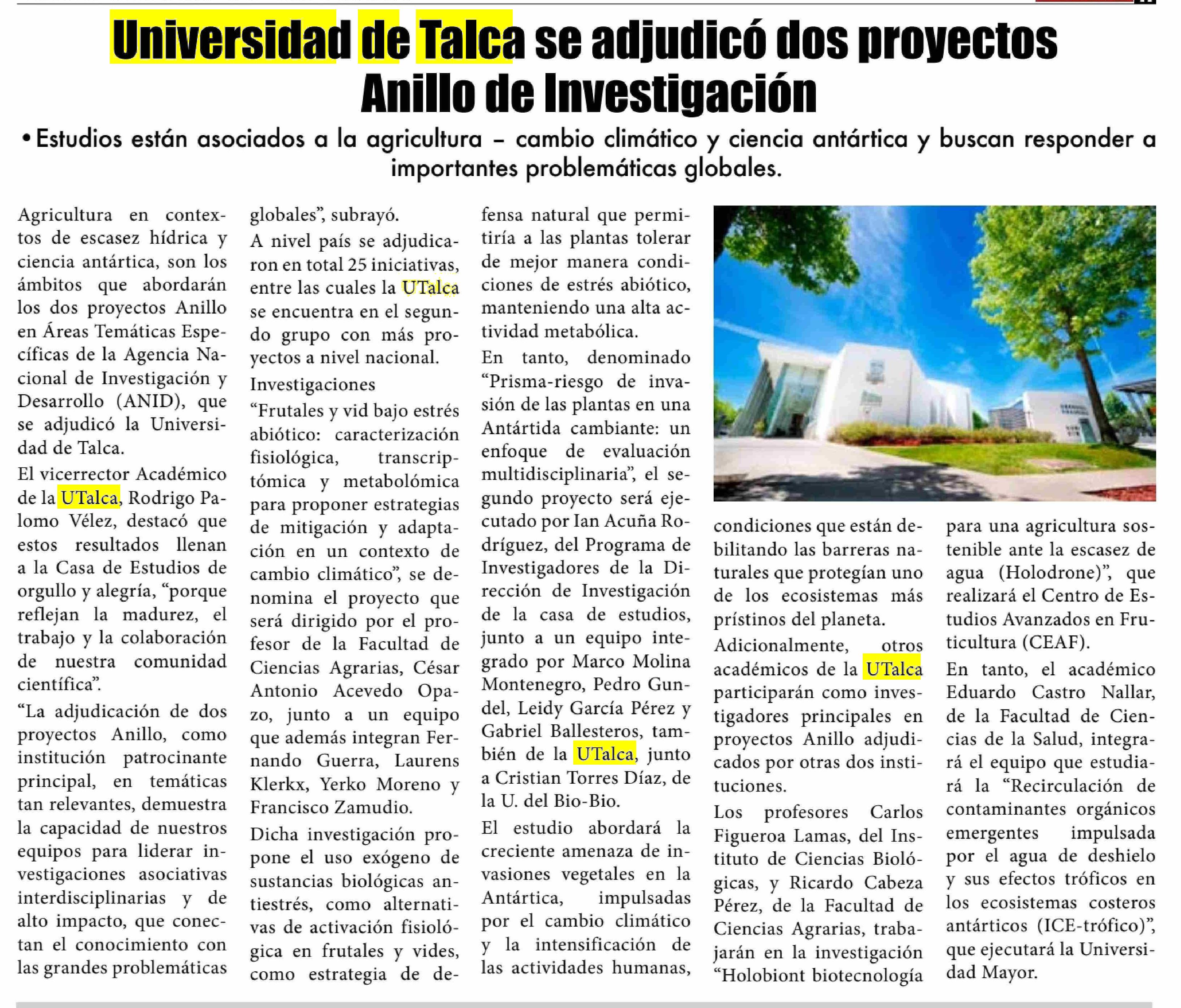 Universidad de Talca se adjudicó dos proyectos Anillo de Investigación