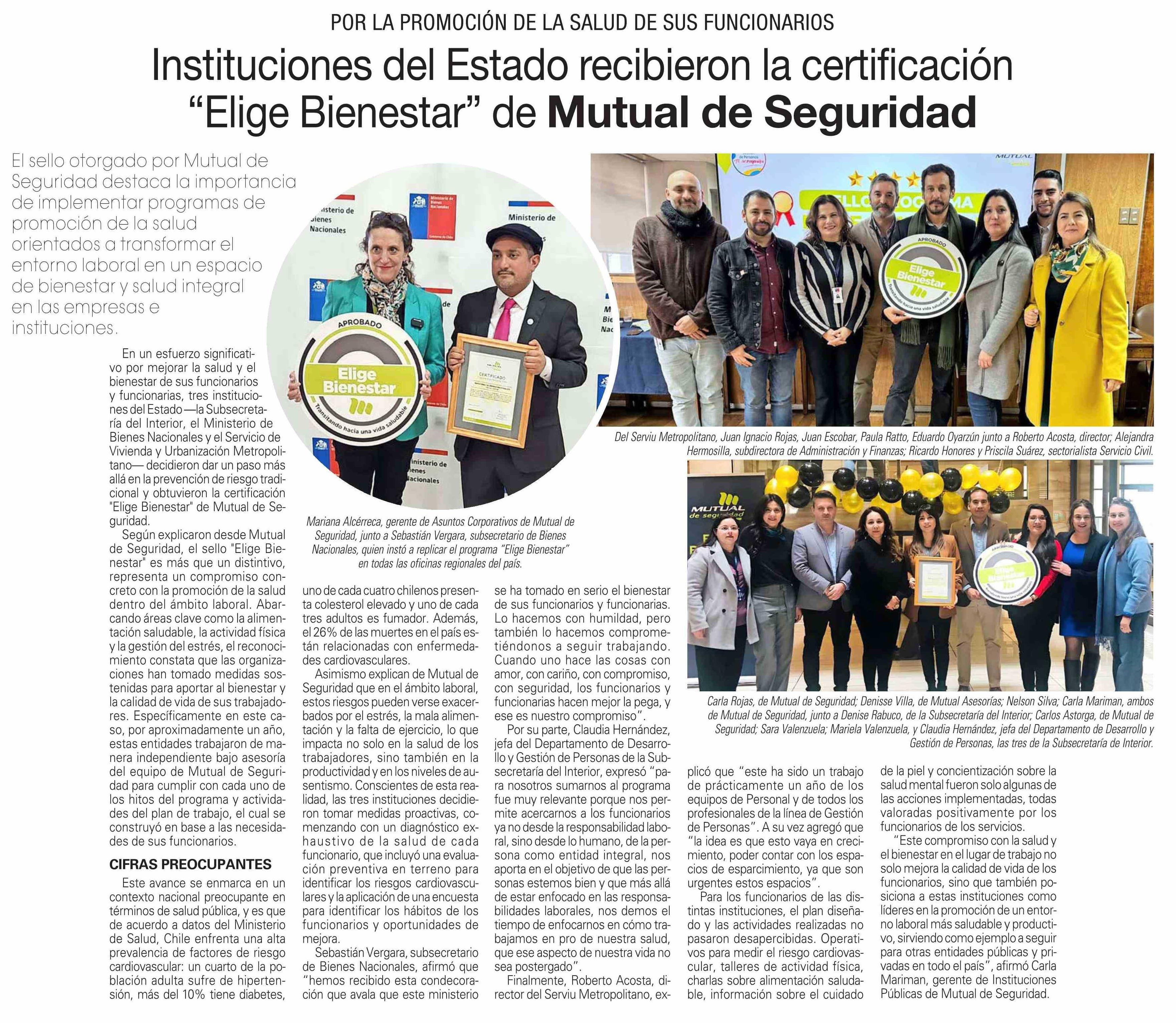 Instituciones del Estado recibieron la certificación “Elige Bienestar” de Mutual de Seguridad