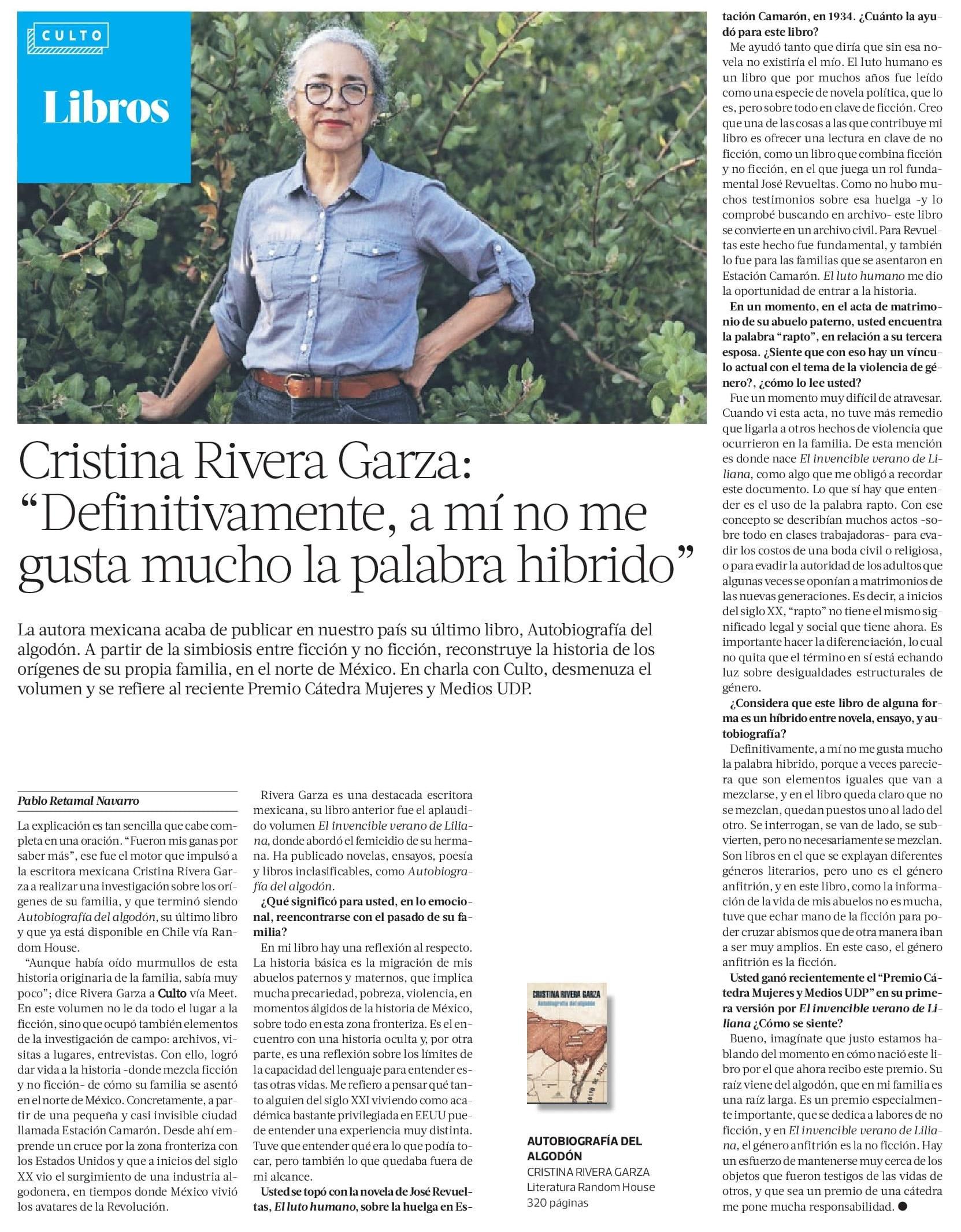 Cristina Rivera Garza: “Definitivamente, a mí no me gusta mucho la palabra hibrido”