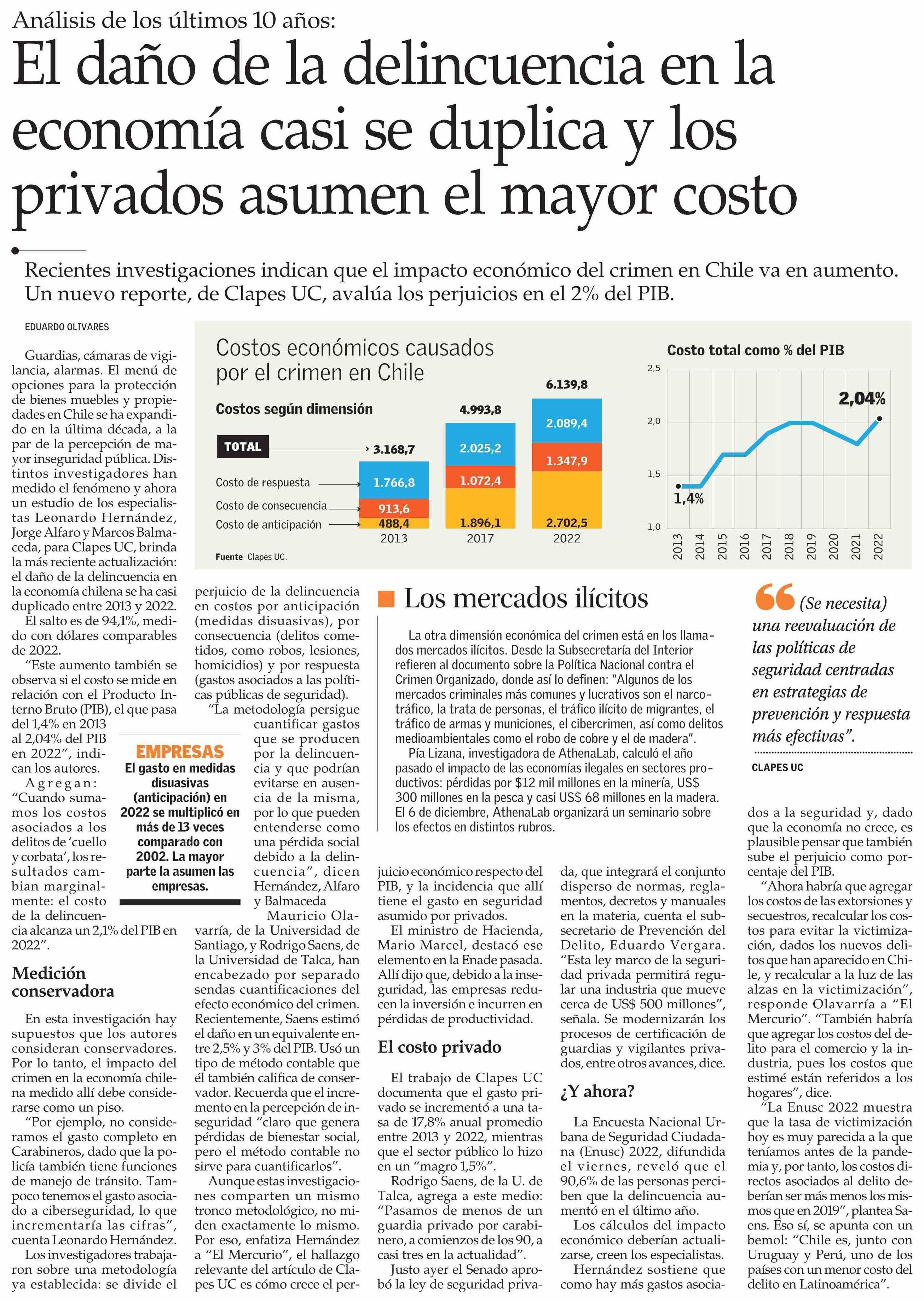 El daño de la delincuencia en la economía casi se duplica y los privados asumen el mayor costo