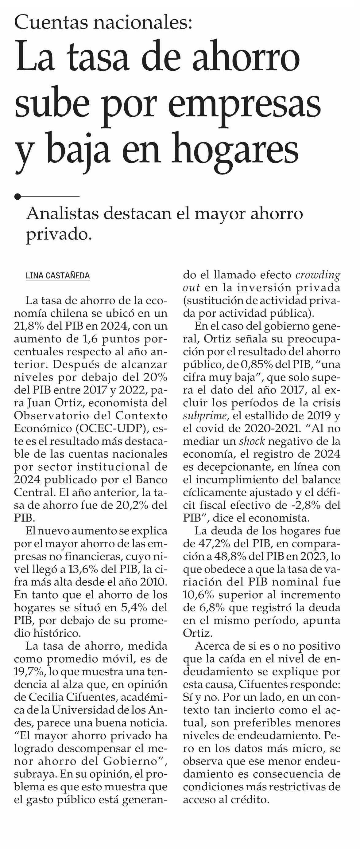 La tasa de ahorro sube por empresas y baja en hogares