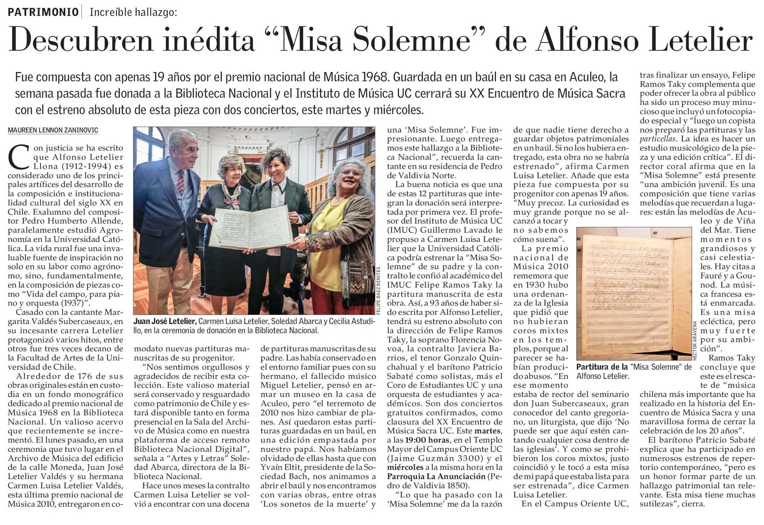 Descubren inédita “Misa Solemne” de Alfonso Letelier