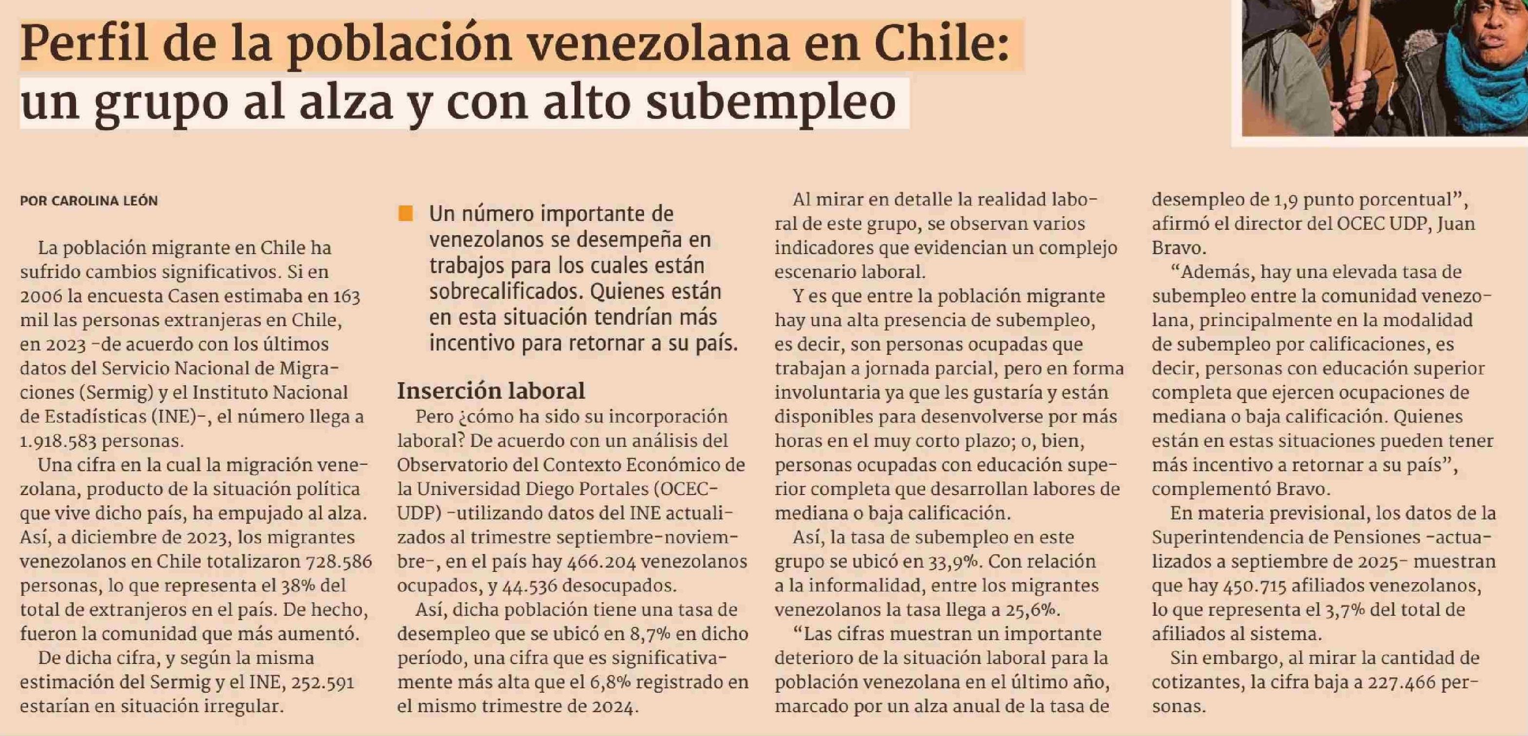 Perfil de la población venezolana en Chile: un grupo al alza y con alto subempleo
