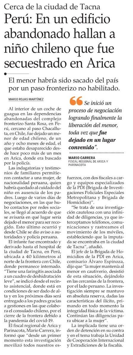 Perú: En un edificio abandonado hallan a niño chileno que fue secuestrado en Arica